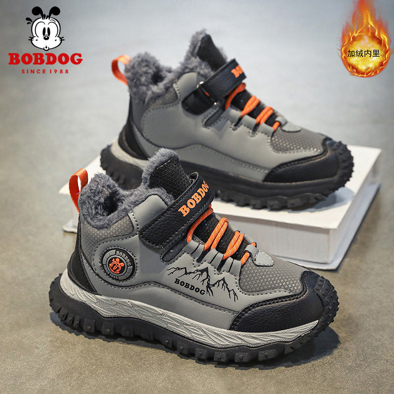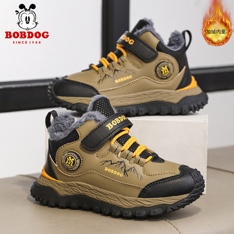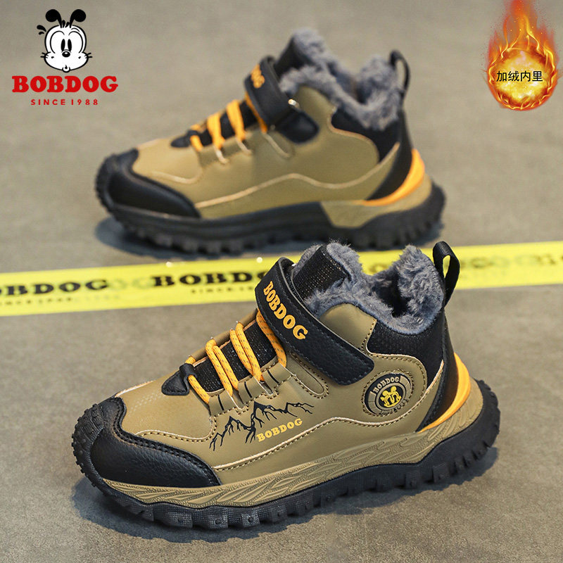 巴布豆男童棉鞋2026冬季加绒加厚保暖大棉儿童运动鞋防滑皮面支撑