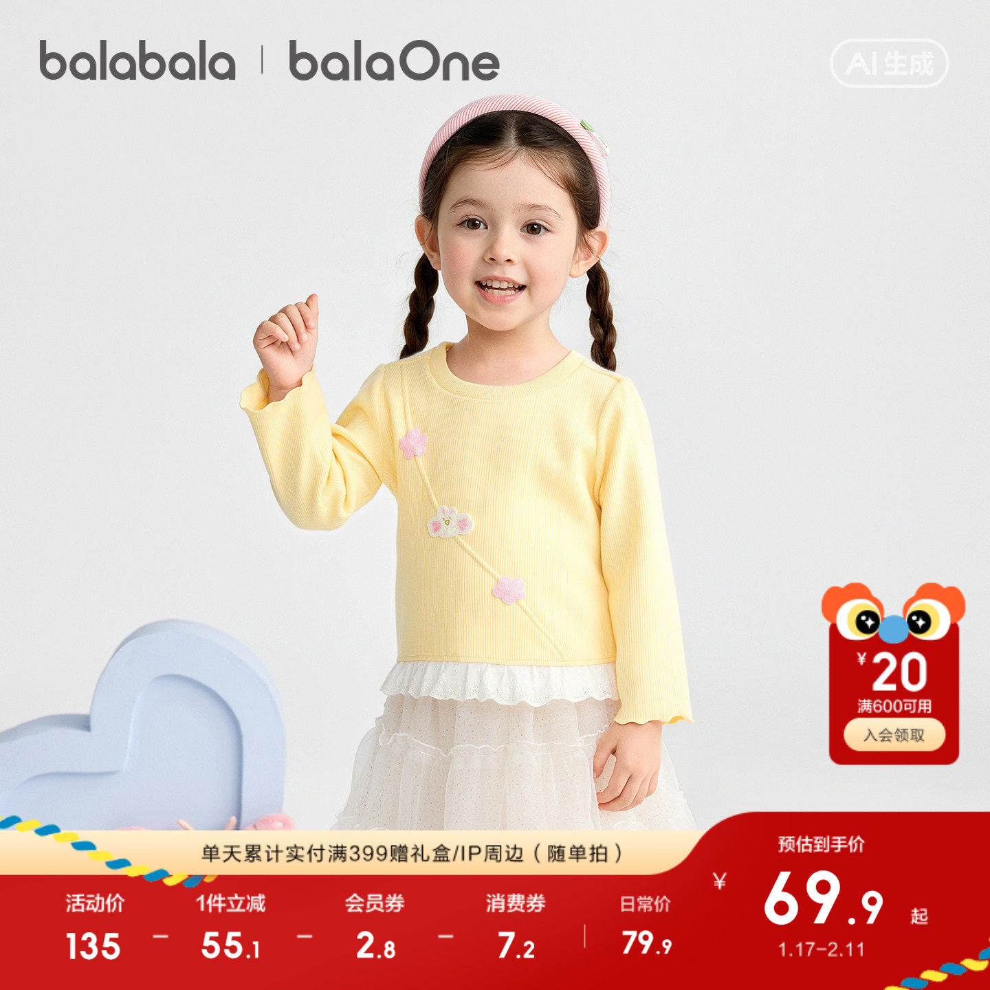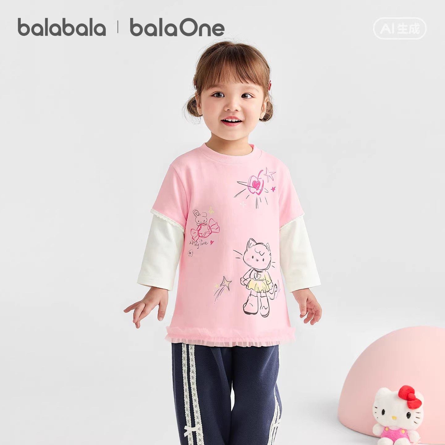 【balaOne】巴拉巴拉童装儿童长袖t恤女童2026年新款春秋装打底衫