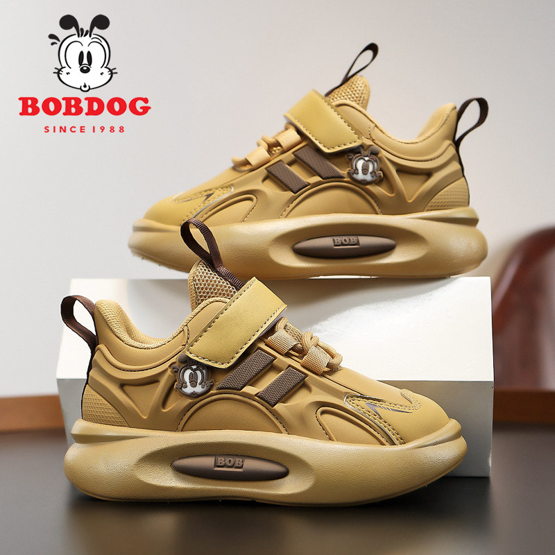 巴布豆鞋子男童2025秋冬新款软底防滑跑步鞋防水皮面儿童运动轻便
