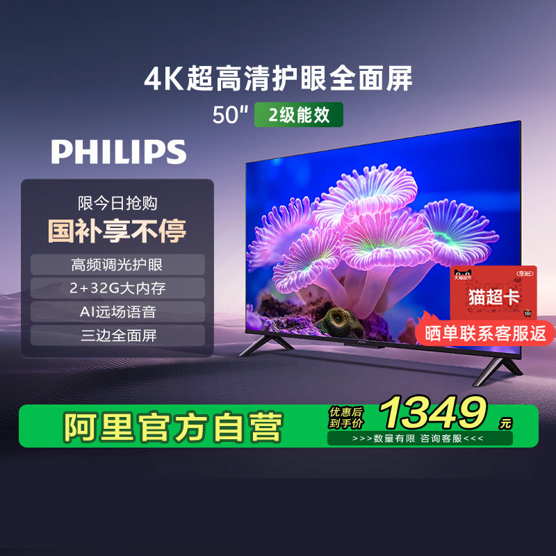 【天猫自营】荷兰皇家飞利浦 50英寸 智能网络液晶家用电视机149