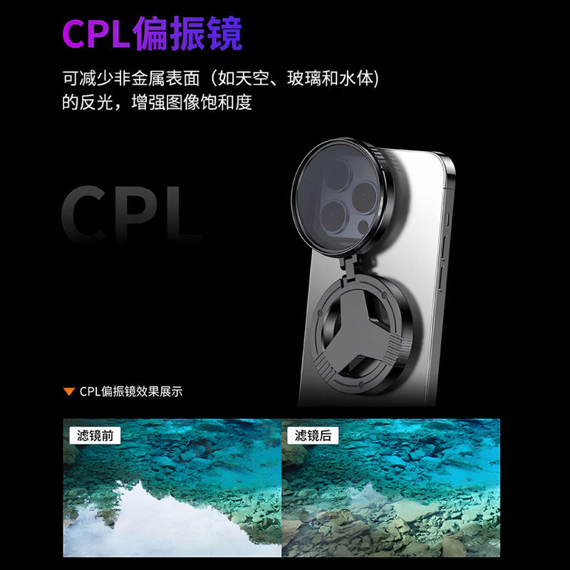 磁吸偏振镜cpl滤镜拍摄影专用镜头偏光镜52mm67夹片适用于苹果16/15手机iPhone17通用消除反光拍照辅助神器