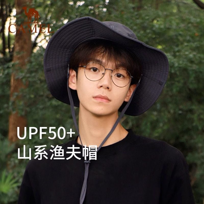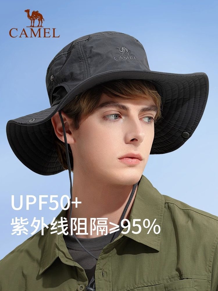 骆驼渔夫帽男大头围户外徒步登山帽露营防晒帽遮阳帽子