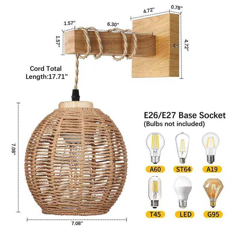 复古日式竹编床头壁灯餐厅藤灯木制卧室农舍乡村室内背景墙壁灯具