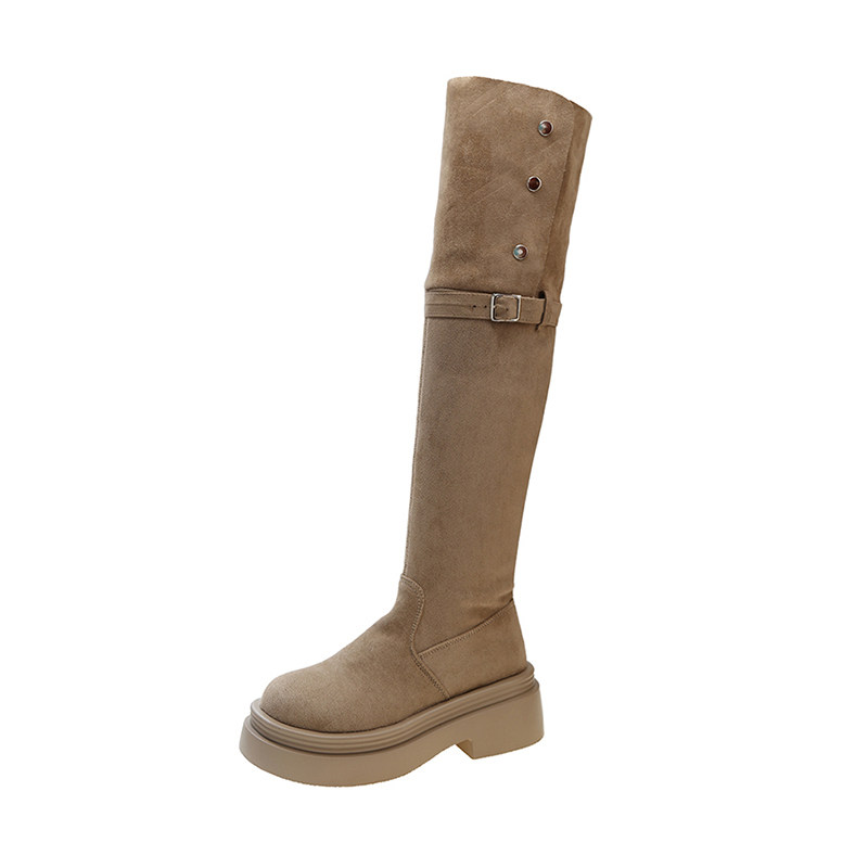 六点大叔小个子内增高两穿高筒靴长筒靴女厚底过膝显瘦绒面长靴子