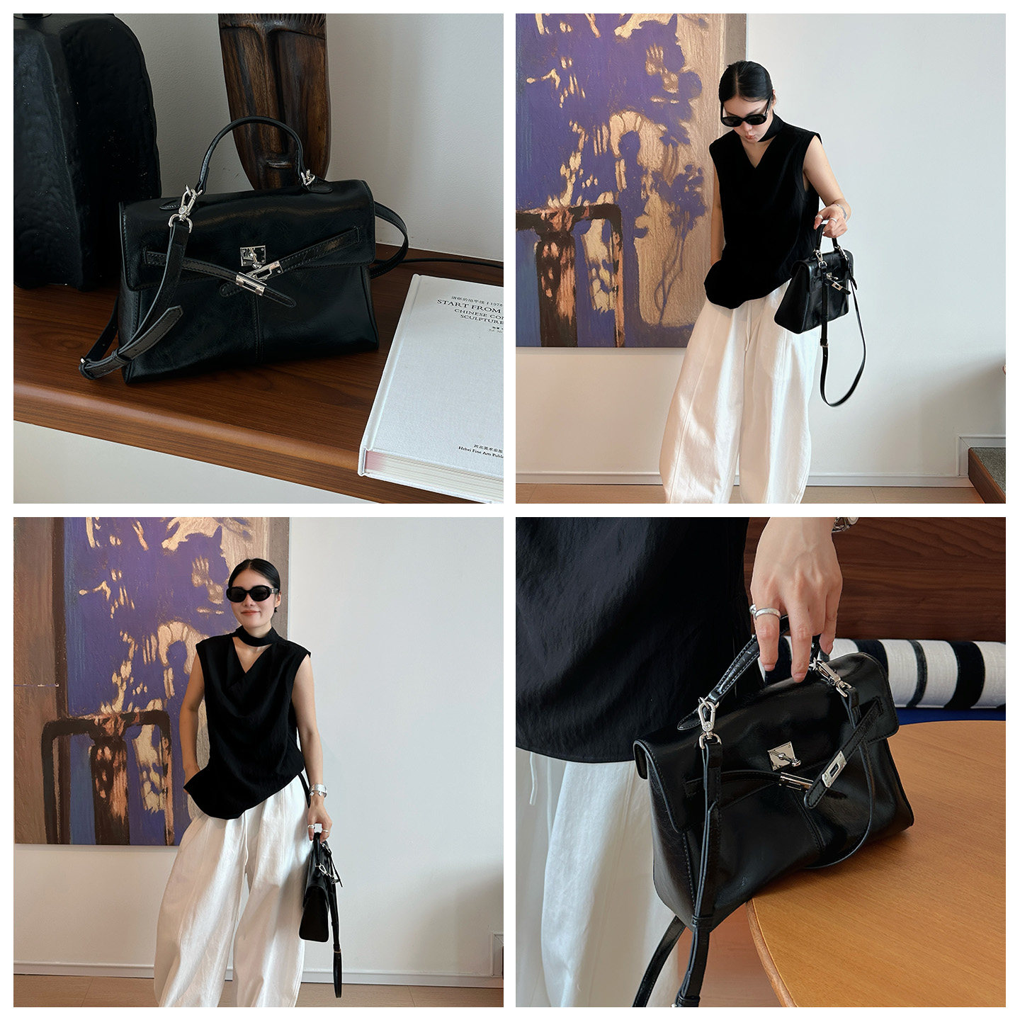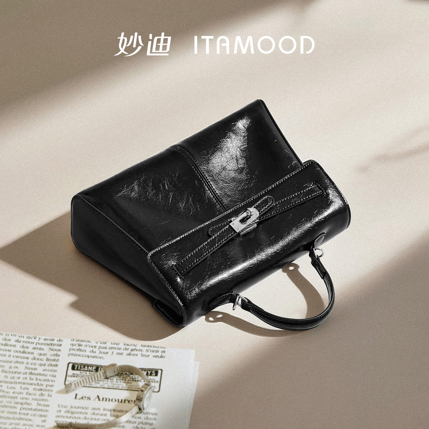 妙迪软皮女包职场气质通勤手提包新款轻奢高级感黑色单肩斜挎包包