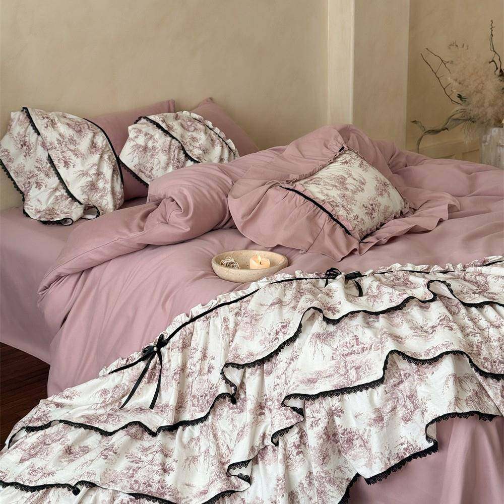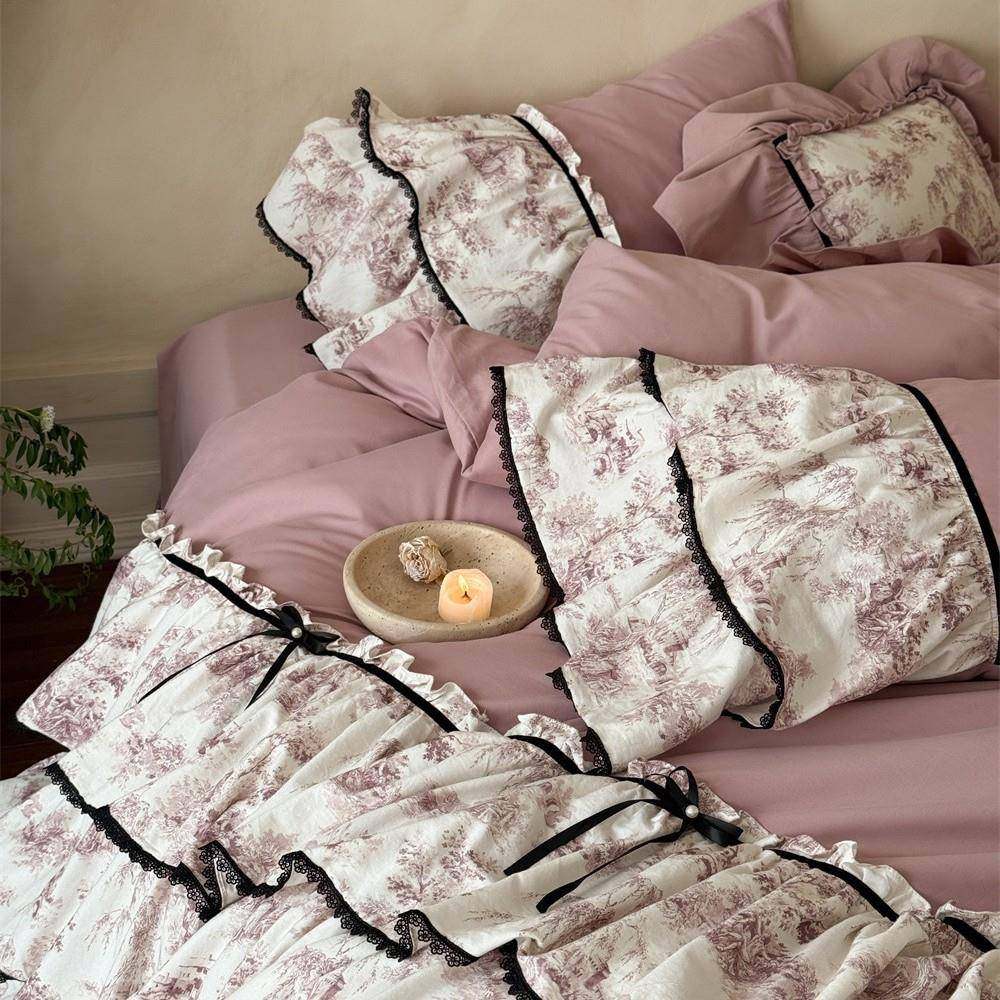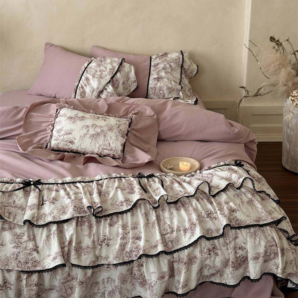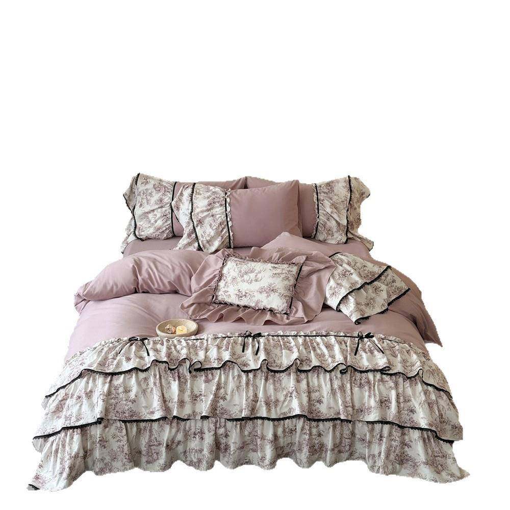 秋冬款法式公主风全棉超柔磨毛床上套件轻奢风荷叶花边被套四件套
