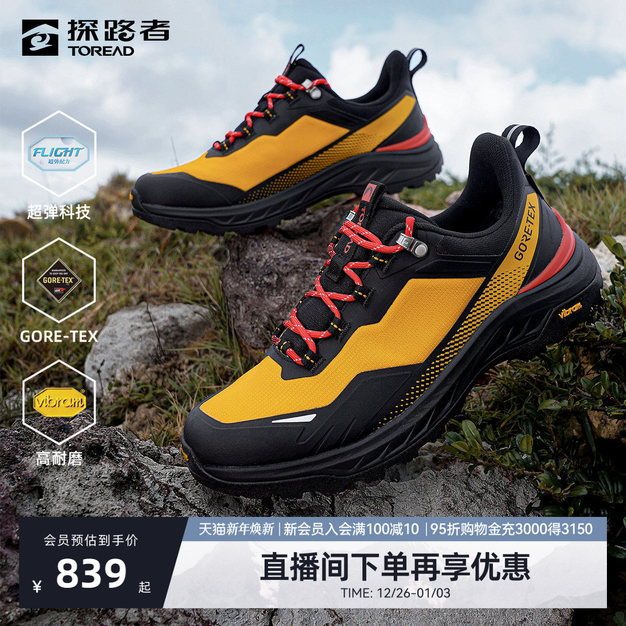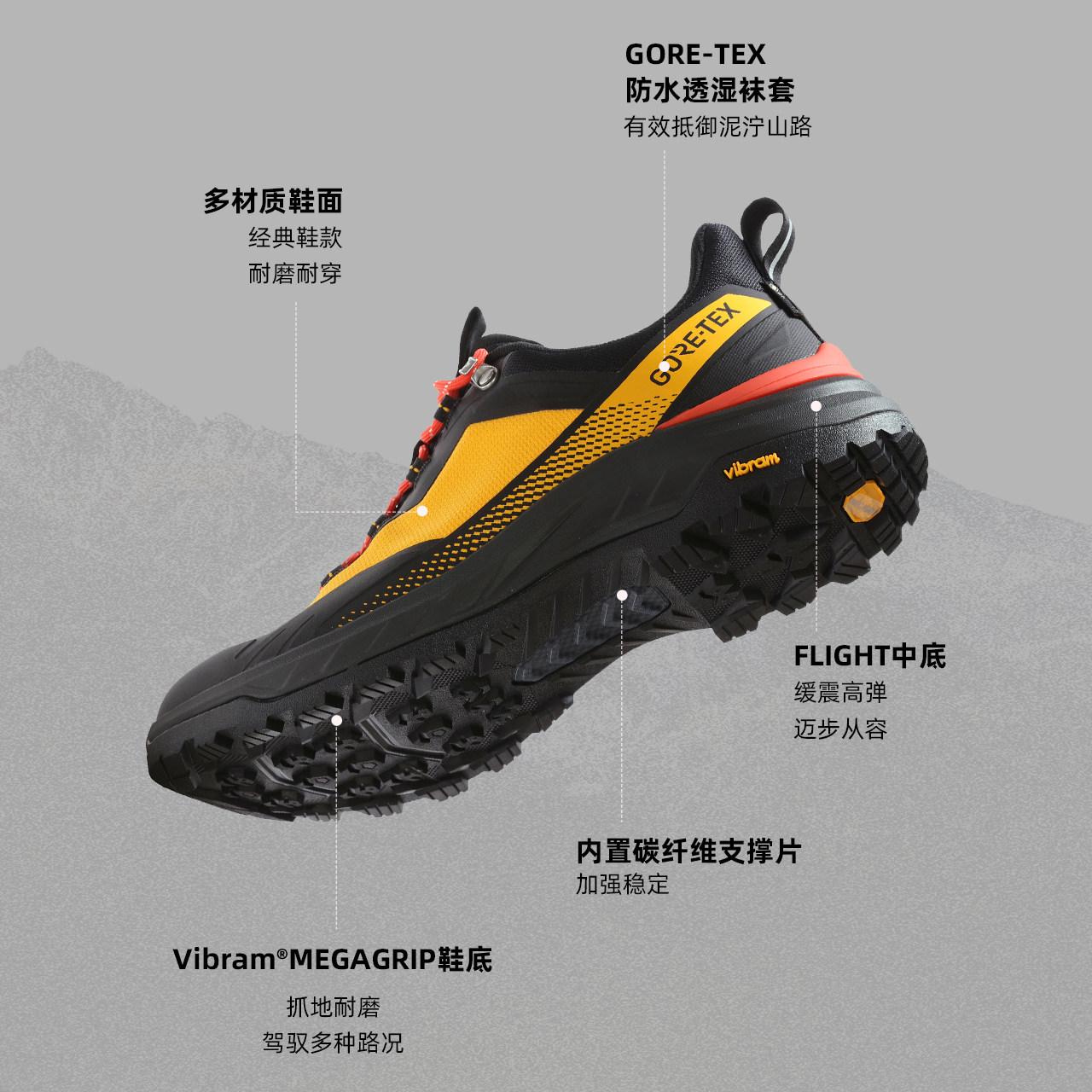 【商场同款】探路者户外GORE-TEX防水VIBRAM轻量登山徒步鞋男女
