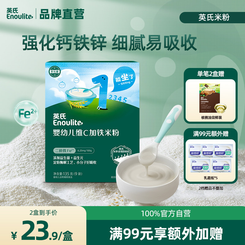 官方直营|英氏米粉盒装1阶维C加铁米糊高铁高钙锌3段6个月