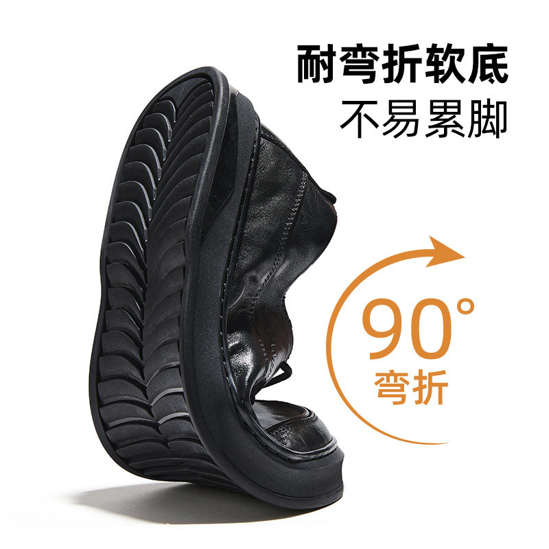 【小牛皮】青润chioryn袋鼠鞋男黑色真皮增高厚底休闲通勤风皮鞋