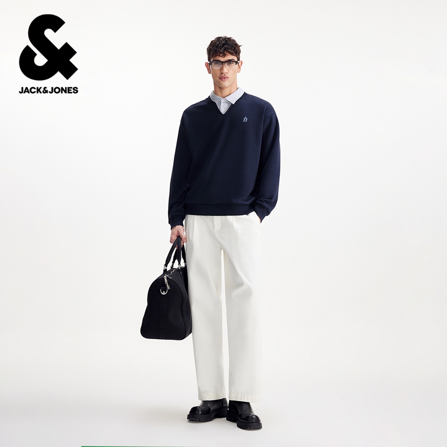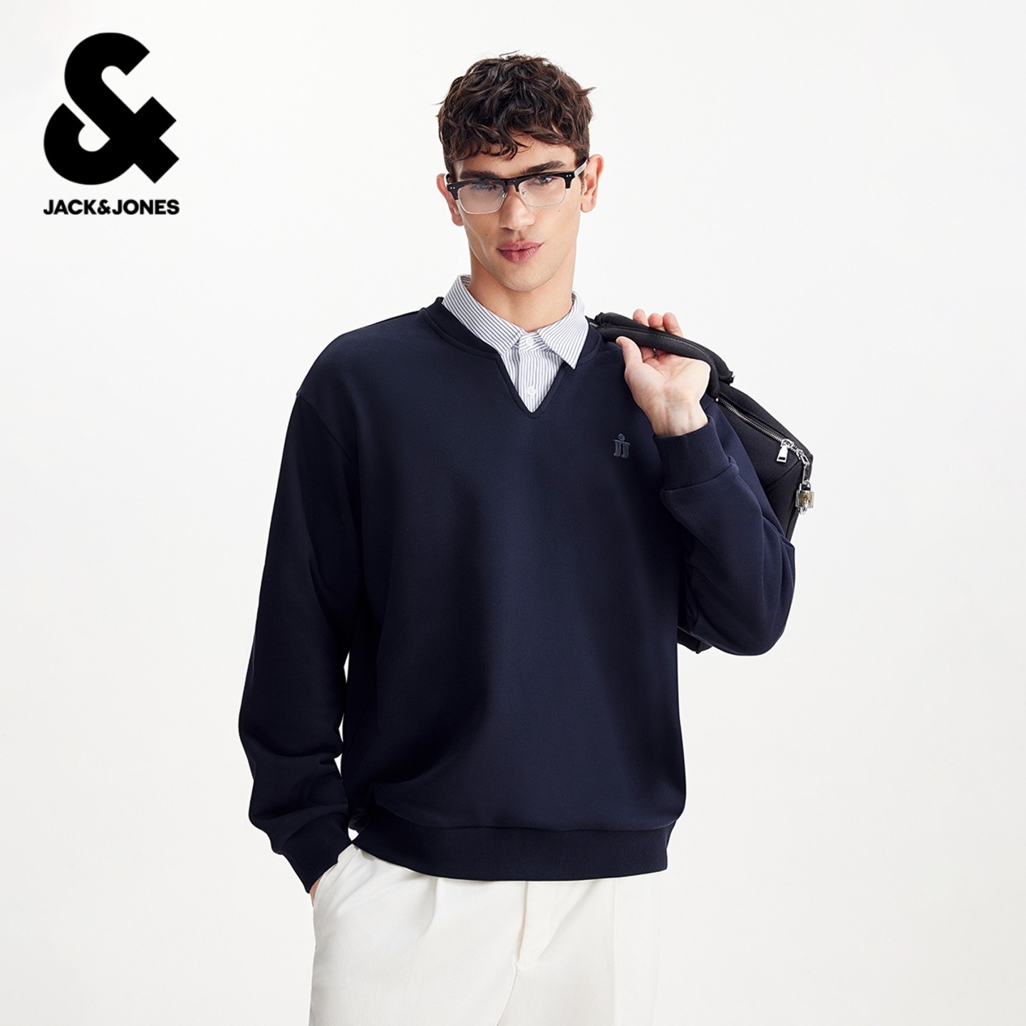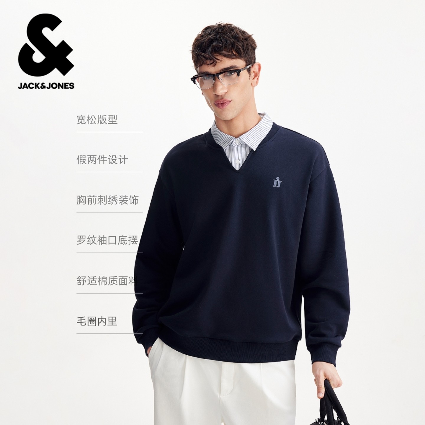 杰克琼斯2026年春季新款男装卫衣假两件宽松长袖时尚舒适上衣
