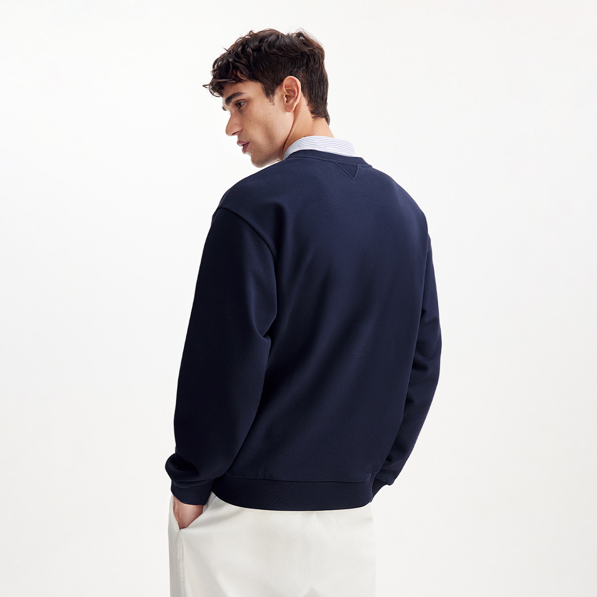 略宽松版型,假两件设计,胸前刺绣logo装饰
