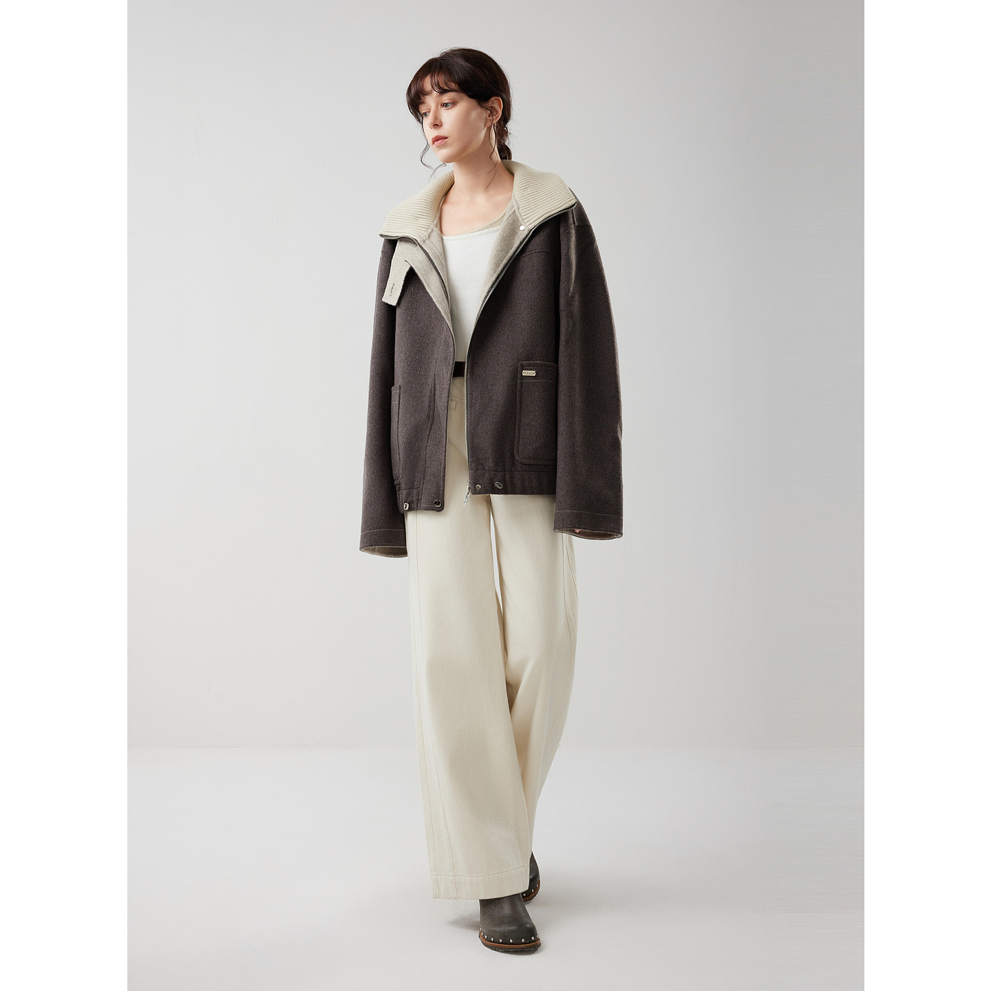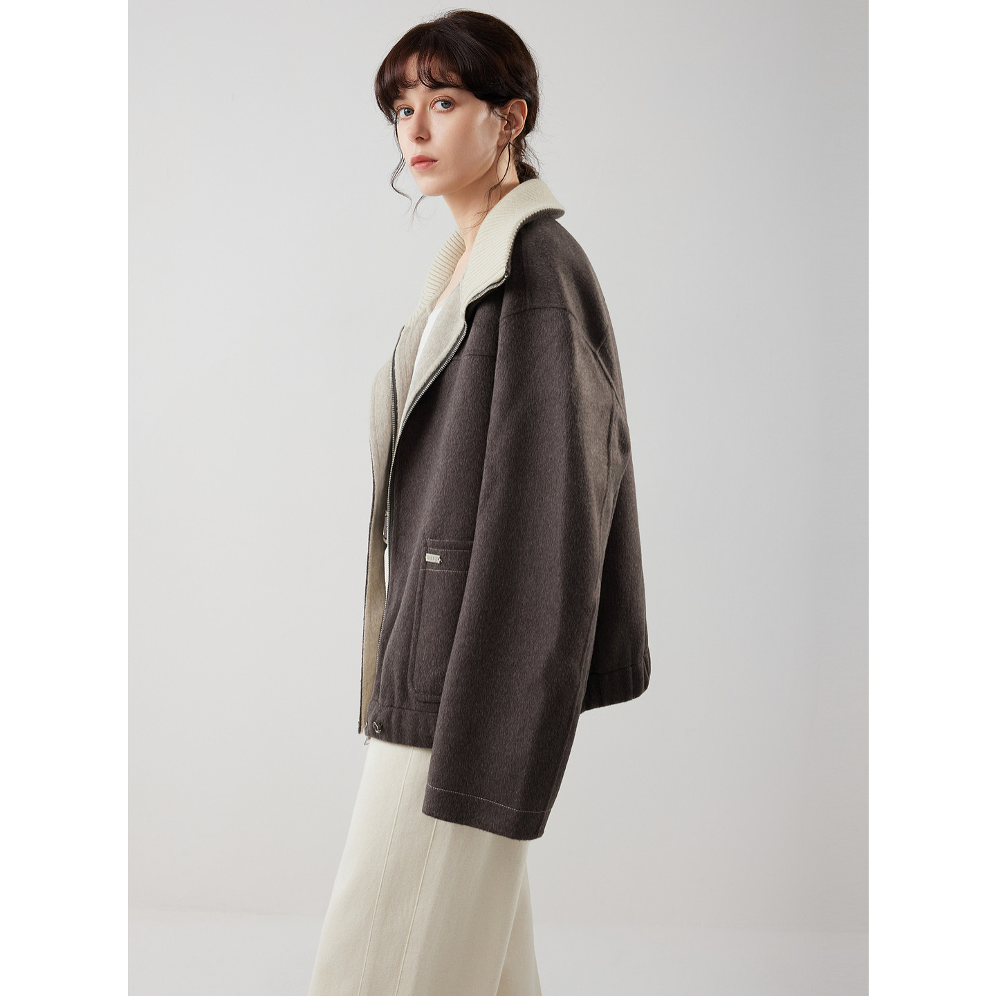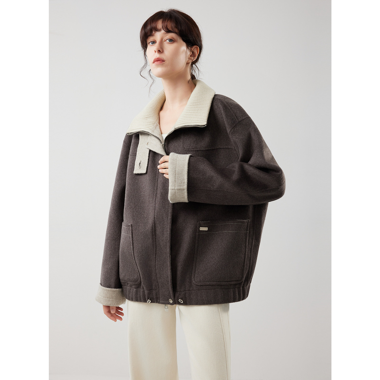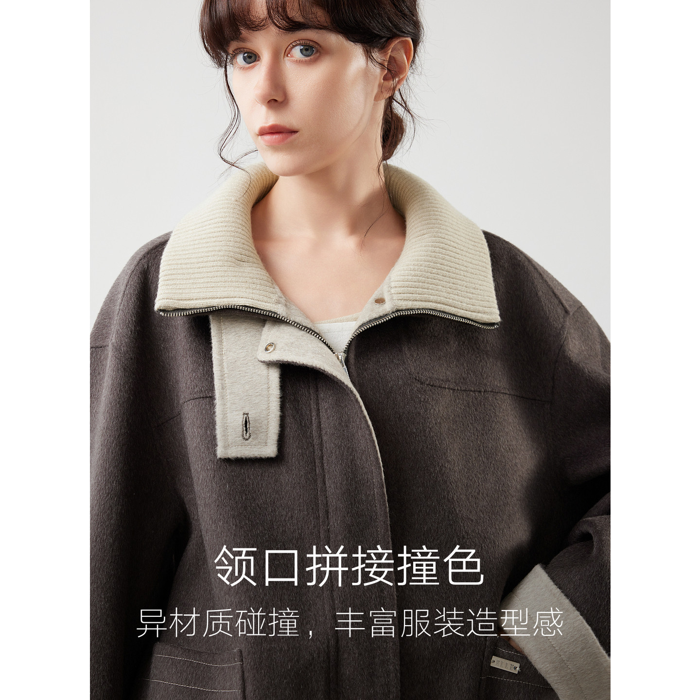 【山羊绒】ELLE绵羊毛休闲廓形双面呢大衣女25冬新款毛呢夹克外套