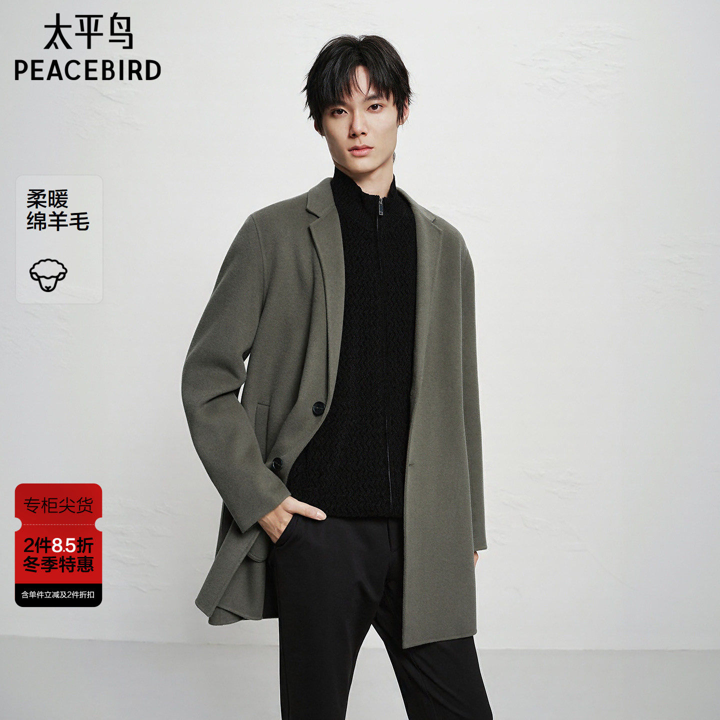 【商场同款】太平鸟男装毛呢大衣25冬季新款绵羊毛外套B1AAF4205@