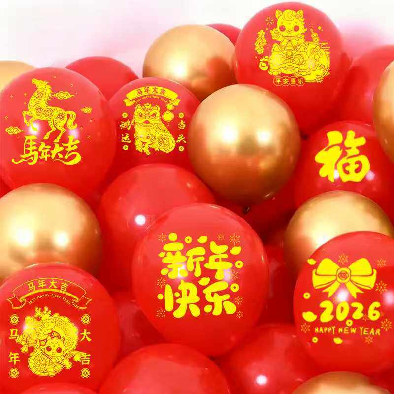 元旦2026新年快乐马年红气球装饰幼儿园店铺公司年会场景布置红色