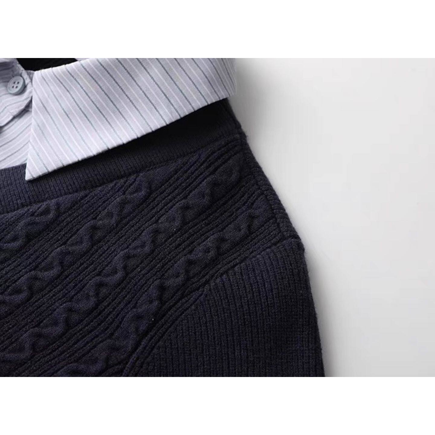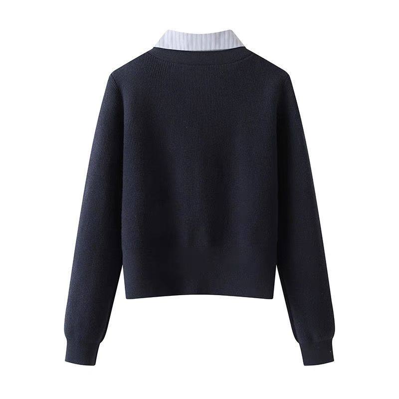 针织衫女假两件上衣2026年秋季新款长袖学院风高级感大码内搭毛衫