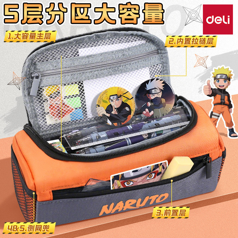 得力笔袋大容量火影忍者联名初高中生小学生文具盒男孩子多层小众开学毕业礼物高级文具袋小众日系动漫铅笔盒