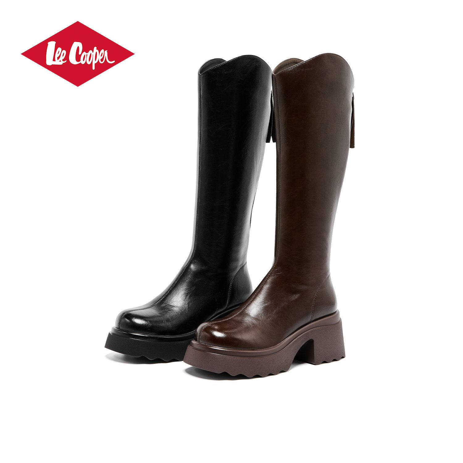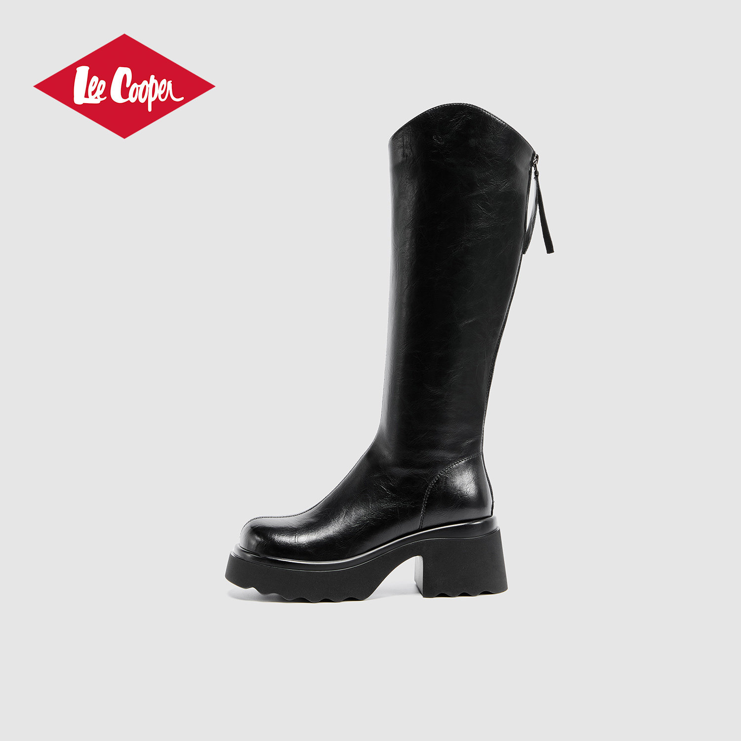 LeeCooper黑色V型长筒靴女2025新款秋冬加绒保暖增高骑士靴女靴子