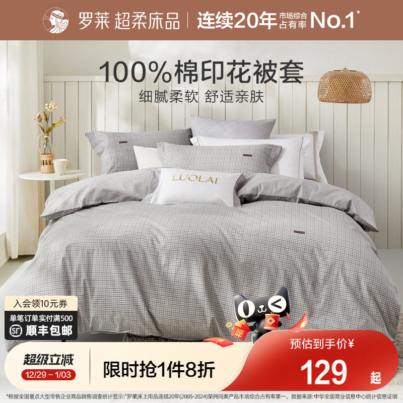 罗莱家纺纯棉全棉学生宿舍单人被套被罩单件100%棉拆件双人家用