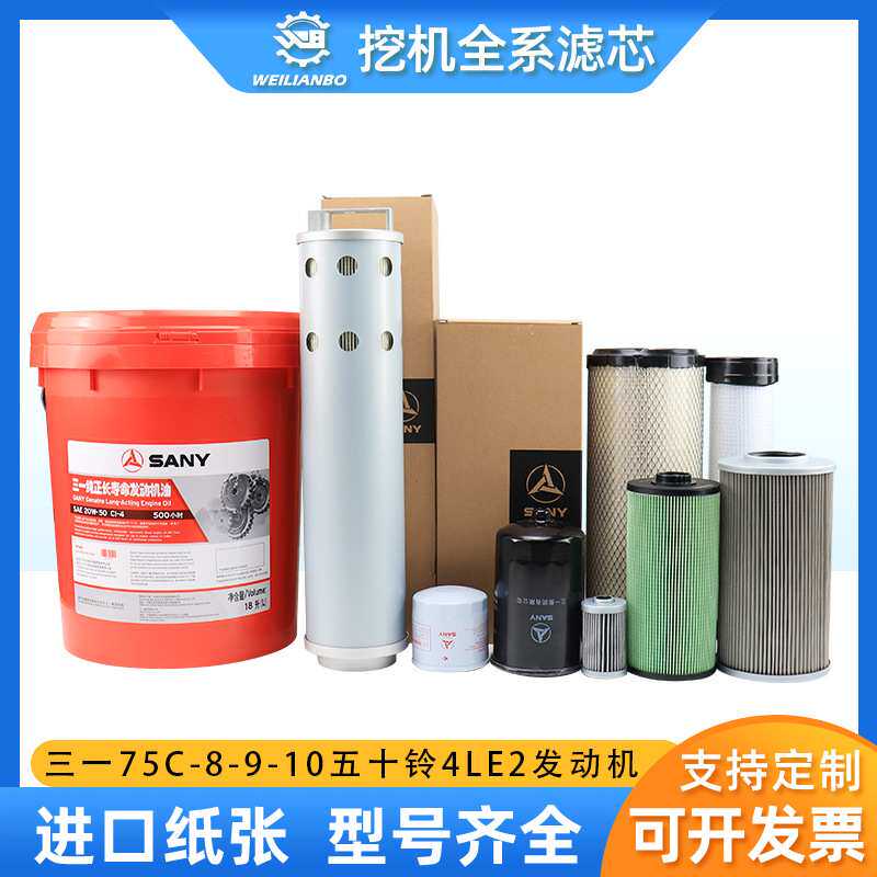 挖掘机三一75-8-9-10五十铃4LE2机油柴油空气滤芯液压油保养配件
