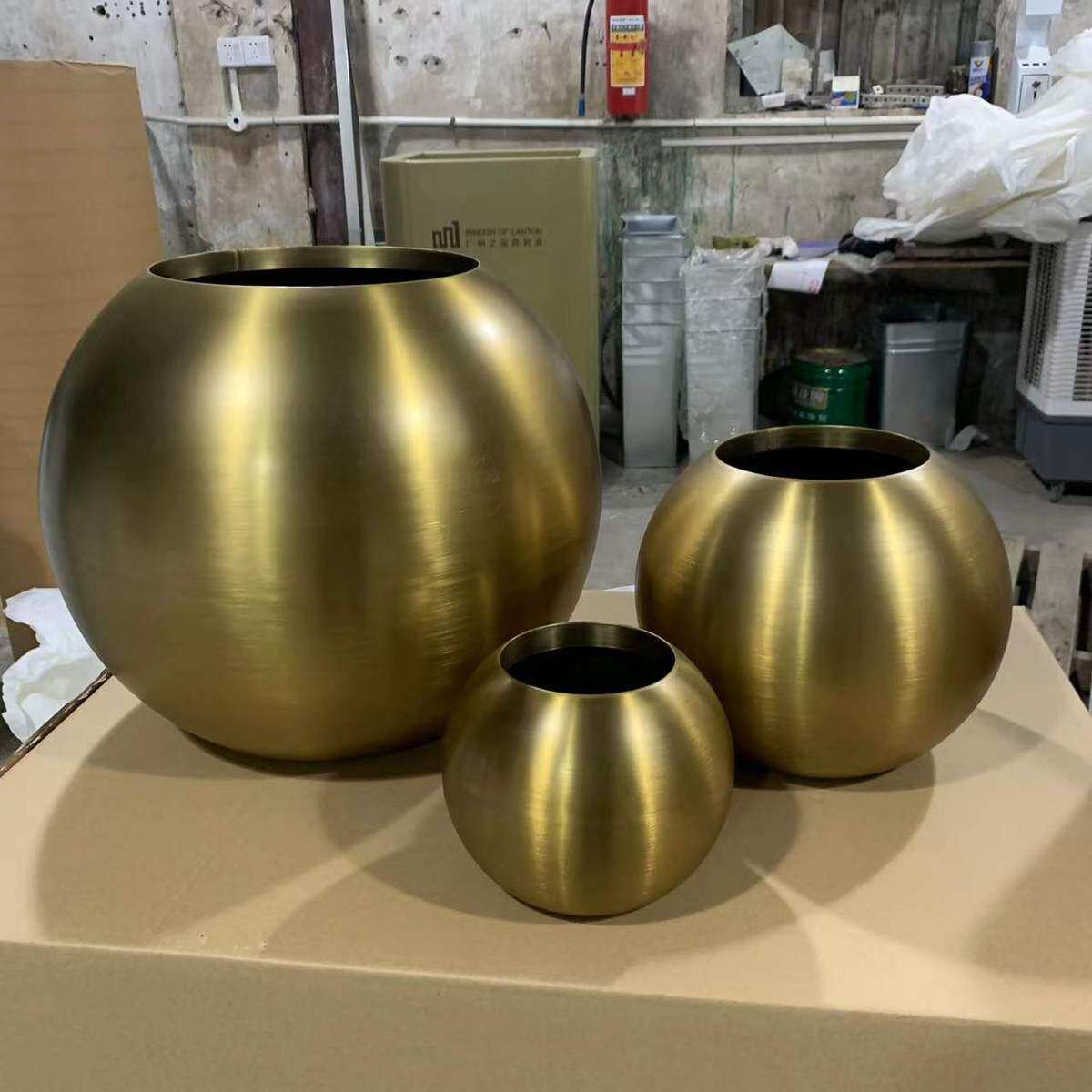 不锈钢花盆花瓶商场落户外花器商场圆形花盆地大圆球花槽花箱厂家