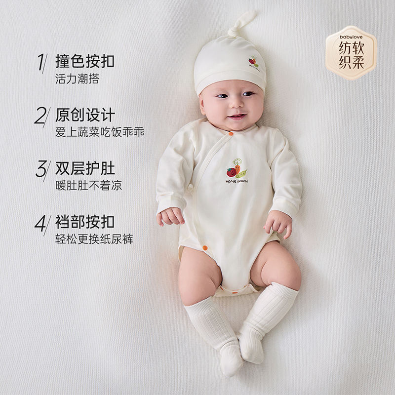 【清仓】babylove【纺软织柔】新生儿包屁衣春秋三角哈衣知蔬达理