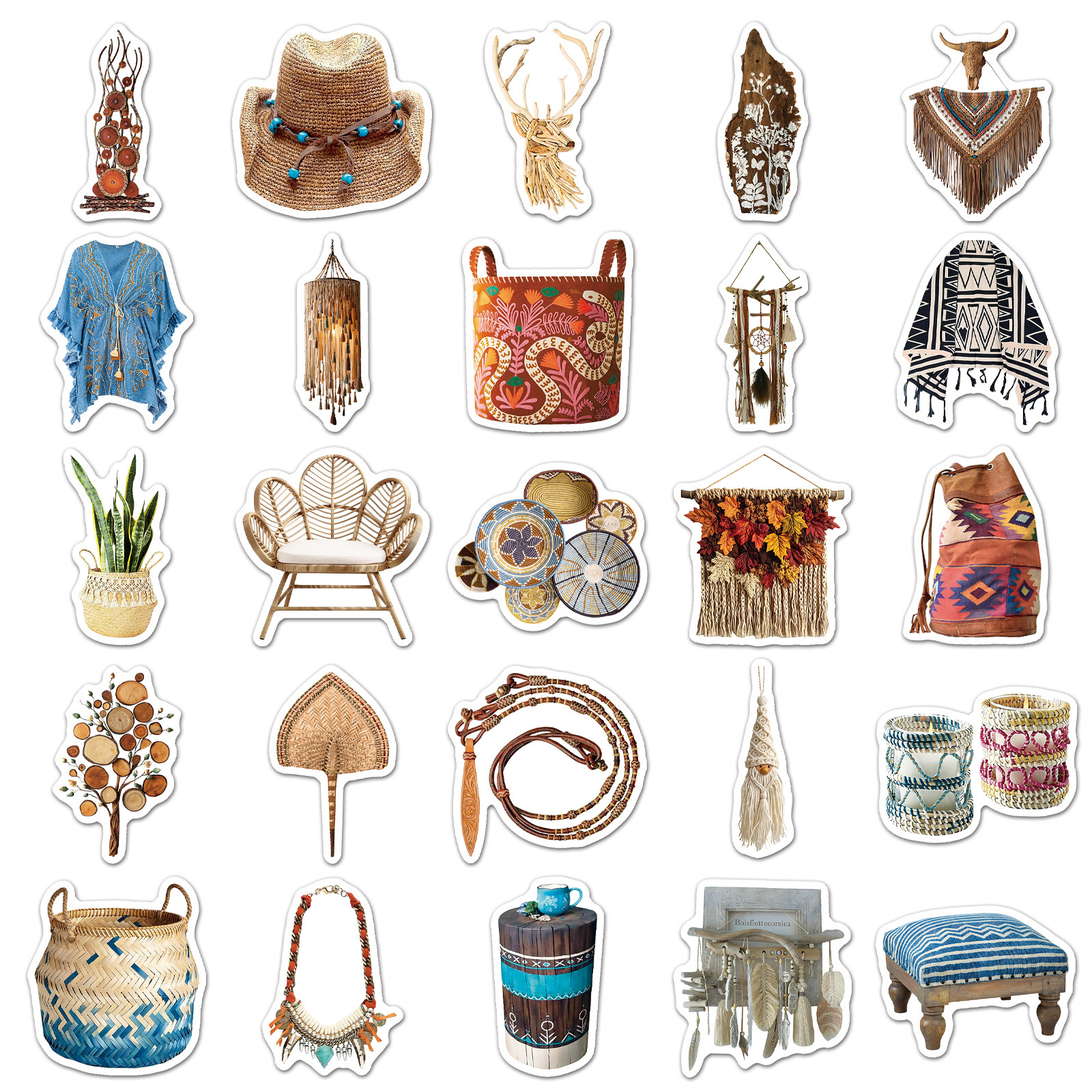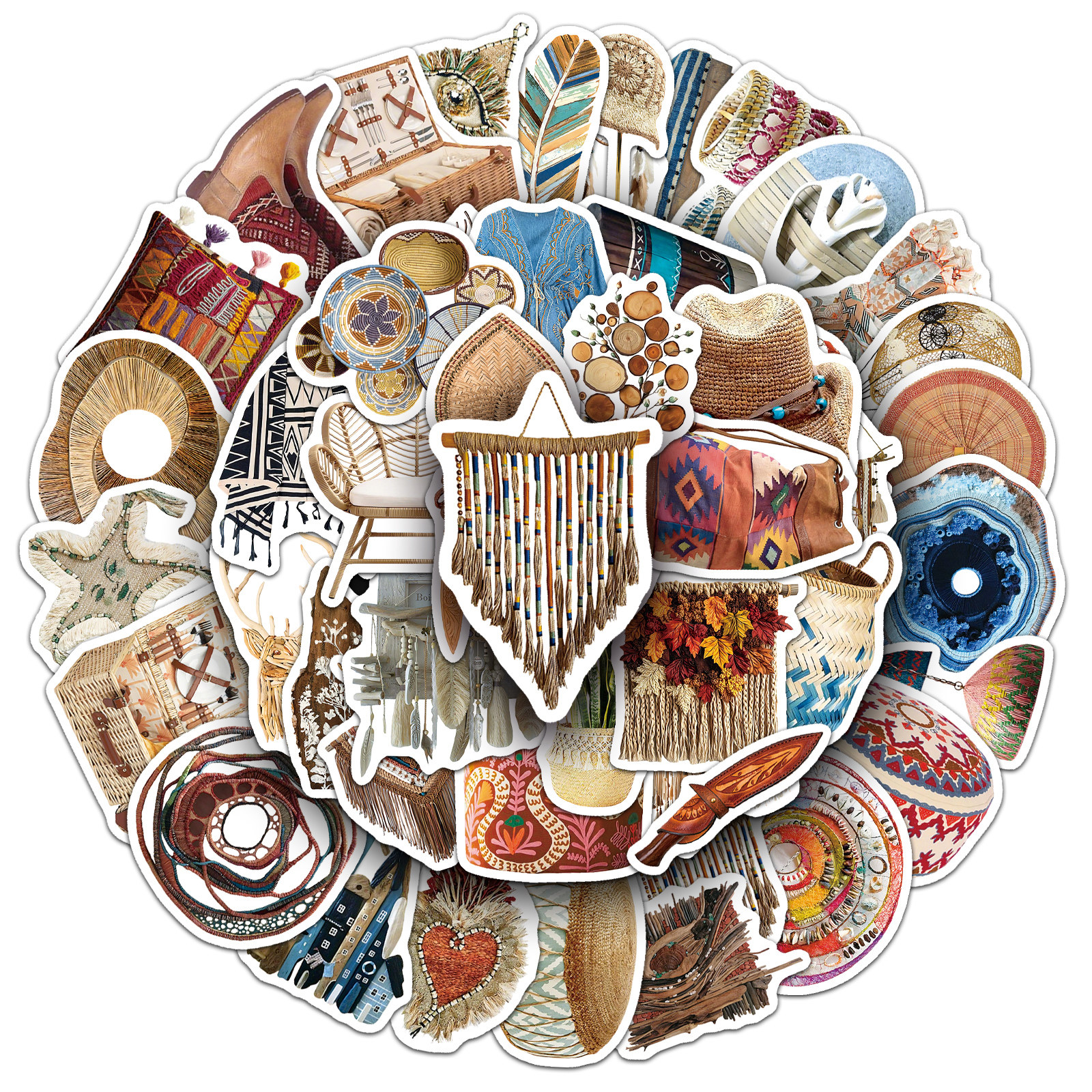 100张波西米亚ins风贴纸复古艺术彩绘涂鸦diy手帐册防水装饰自行车滑板旅行箱床头柜电脑桌面iPad手机壳贴纸