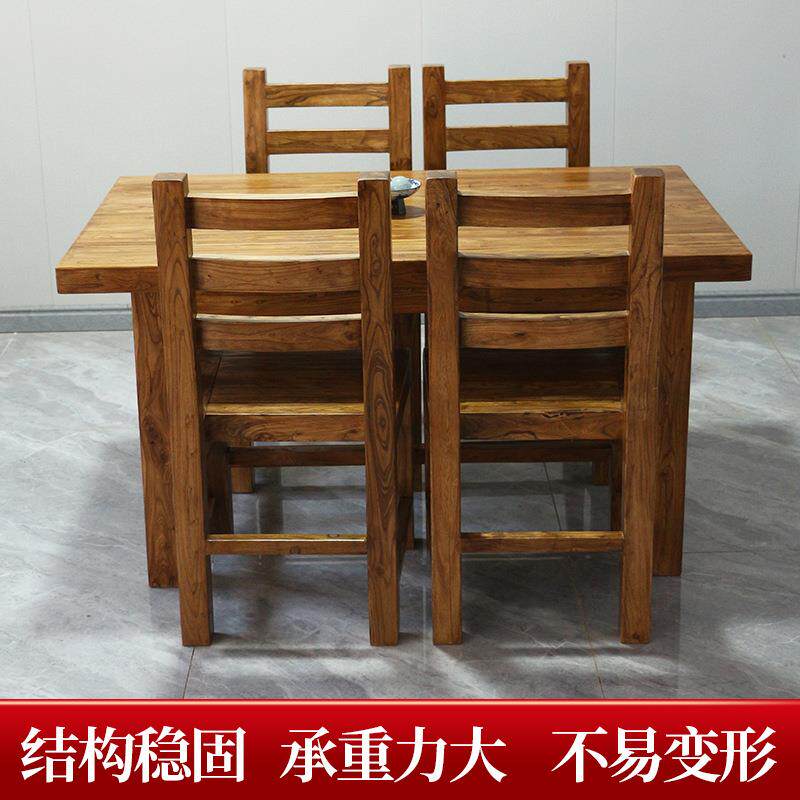 老榆木餐桌椅组合商用承重防潮防烫榫卯工艺酒店餐厅家具全实木