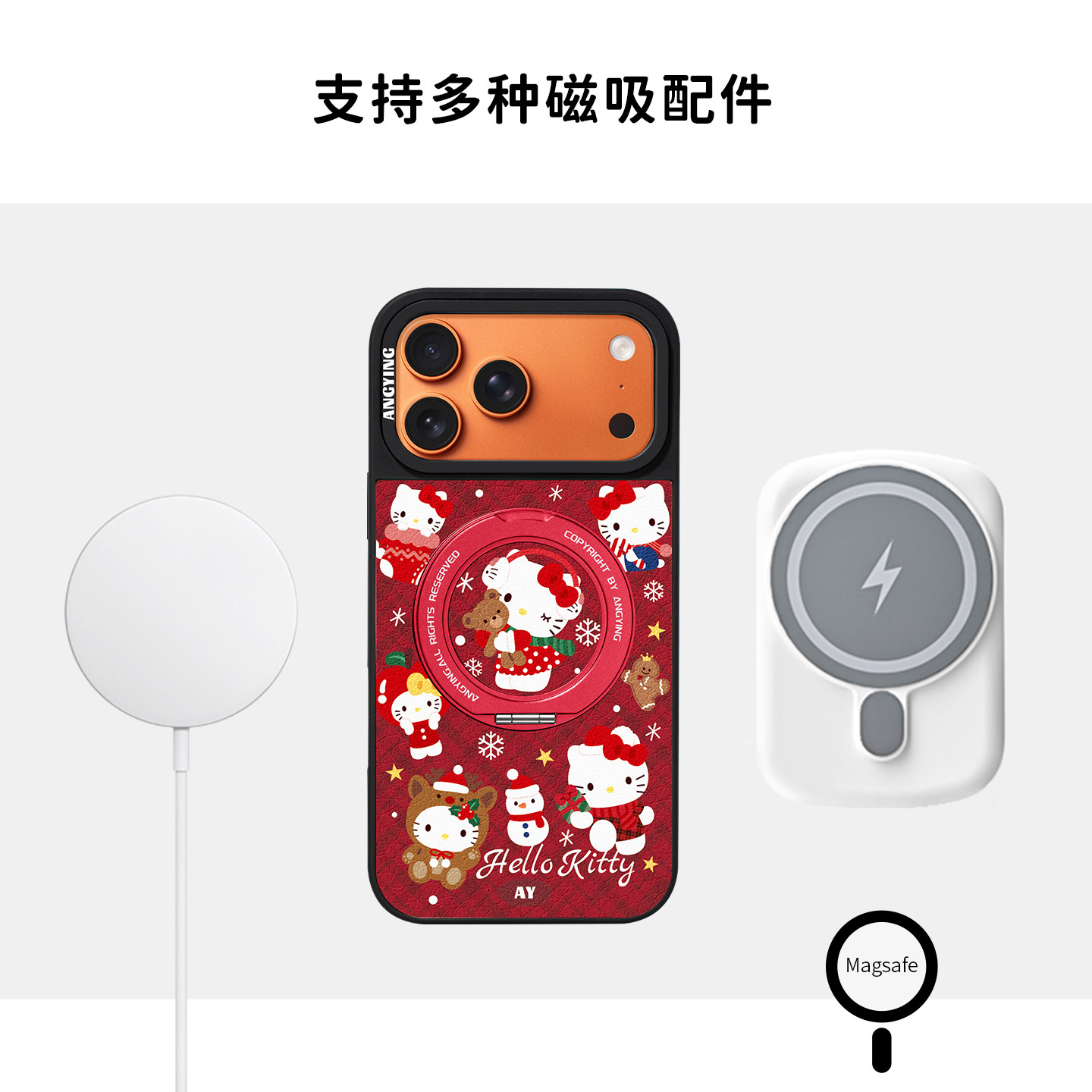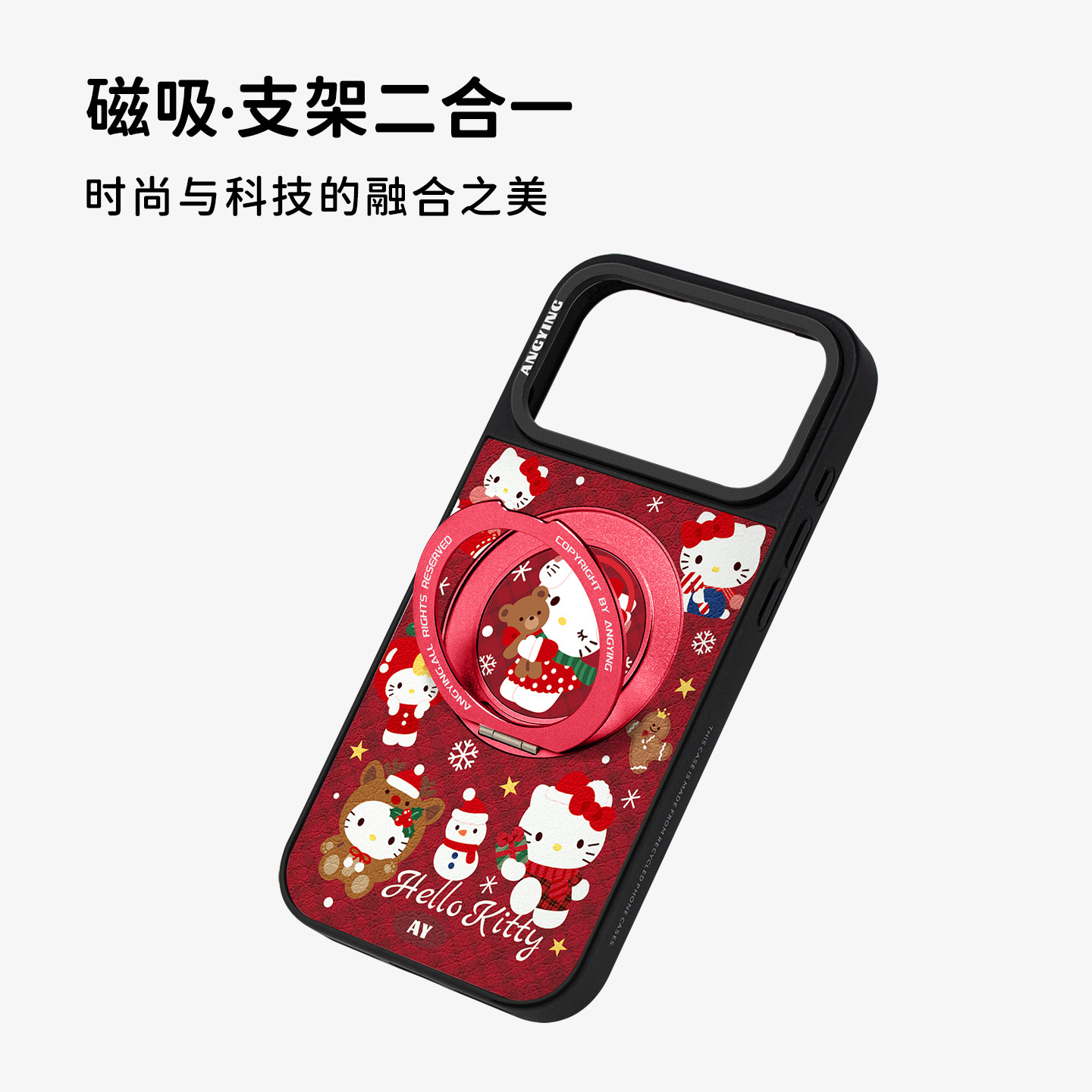 ANGYING × 新春凯蒂猫适用苹果17promax手机壳新款iphone16pro磁吸带支架ip15支点Yo6新年红可爱套高级感女