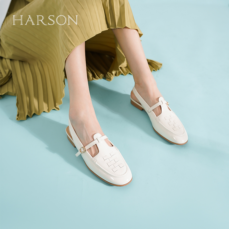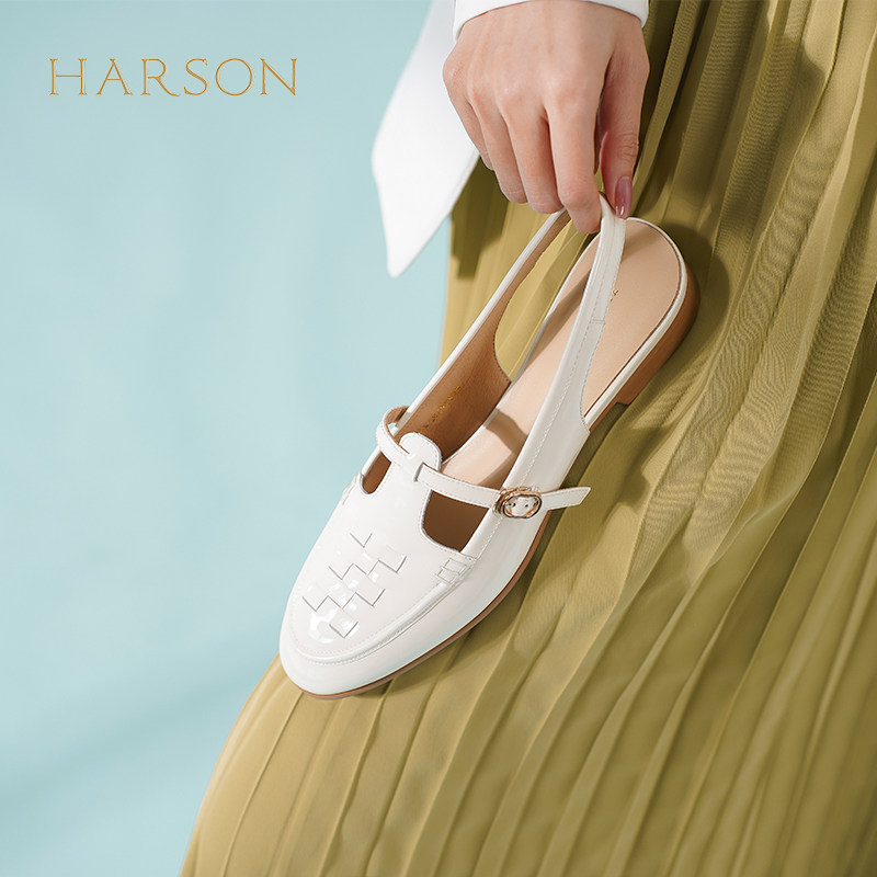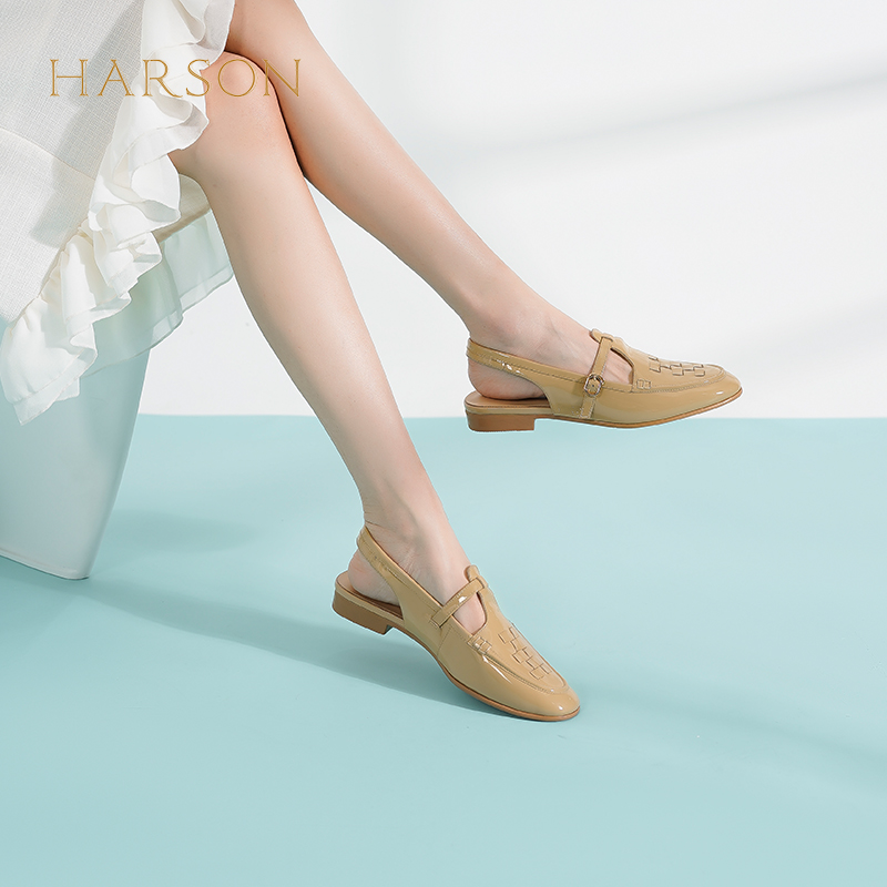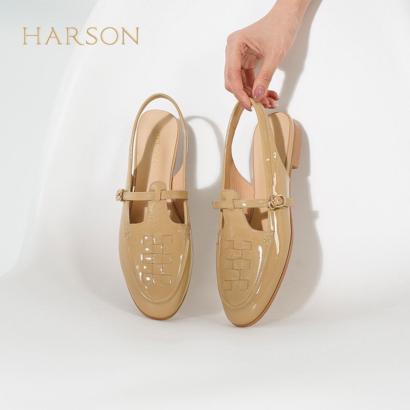 哈森包头凉鞋女夏季新款法式复古文艺罗马编织粗跟凉鞋HM232522