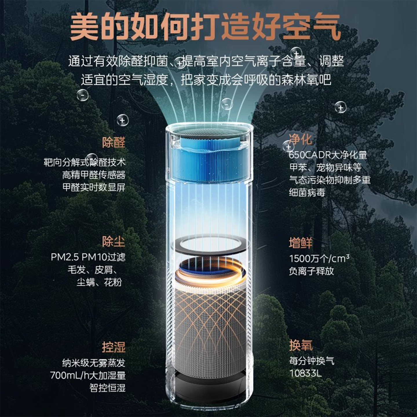 美的R8空气净化器加湿一体机除甲醛雾霾烟味除臭氧母婴级家用卧室