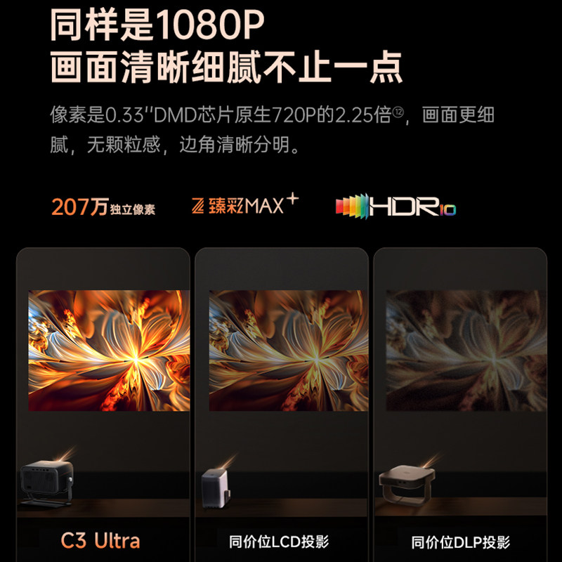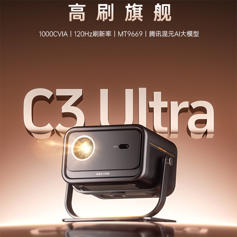 大眼橙C3Ultra投影仪新品上市高亮家用高清放映机1080P智能便携家庭影院白天直投卧室手机投屏一体投影机