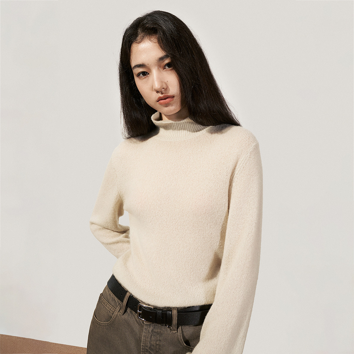 【季末折扣】欧时力羊毛羊绒高领毛衣上衣软糯淡人穿搭25秋冬新品