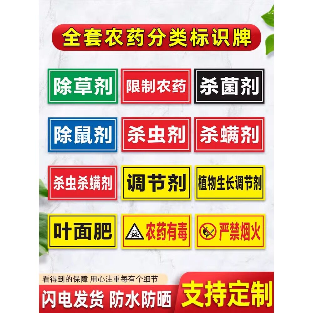 农药标识牌货架区域标识贴墙贴植物生长调节剂除草剂杀虫剂杀菌剂杀螨叶面肥警示牌定制农药标签贴纸全套订制