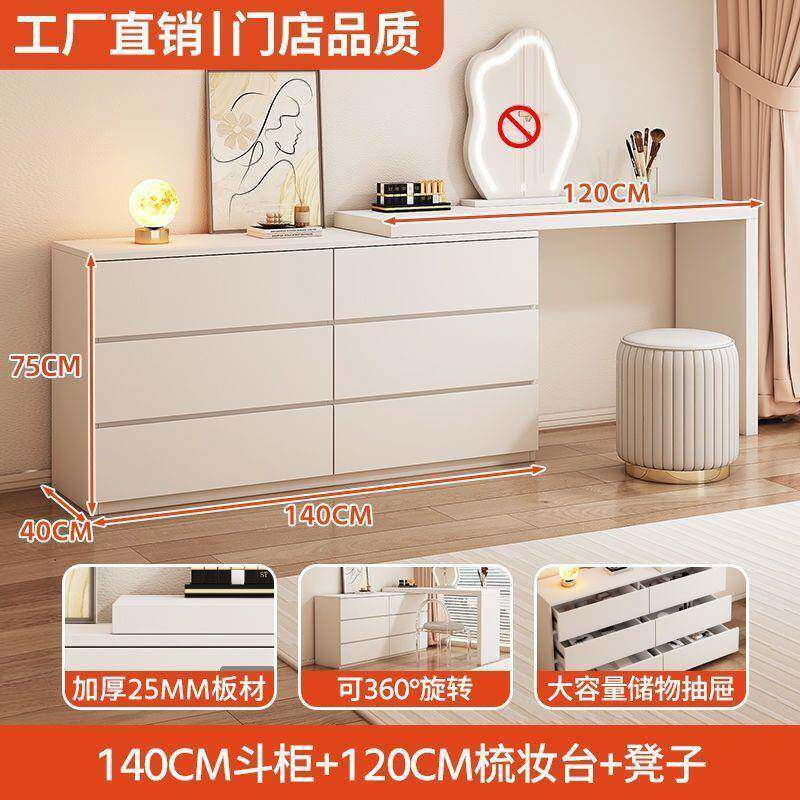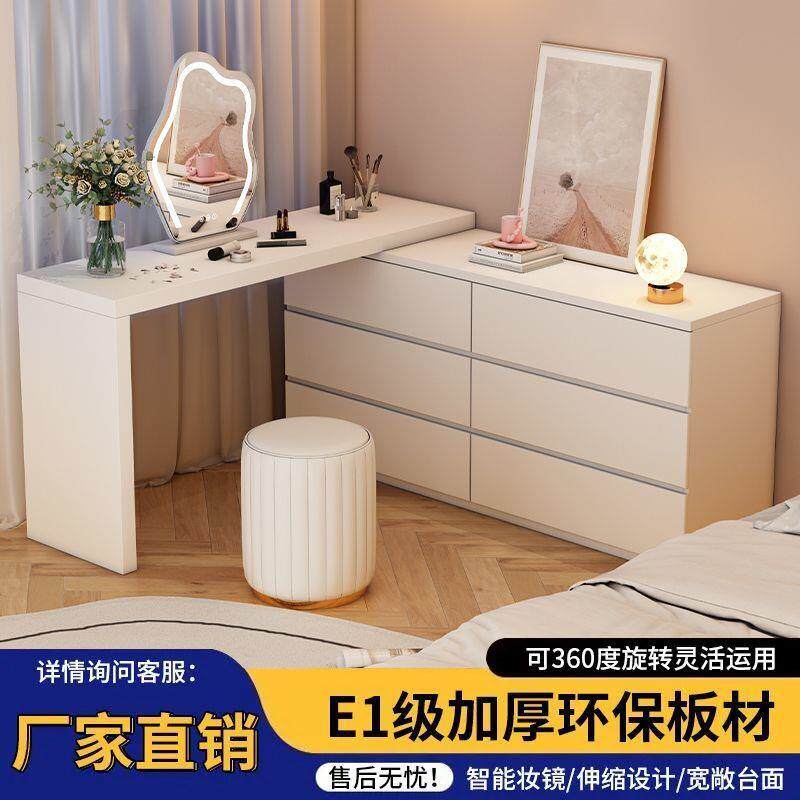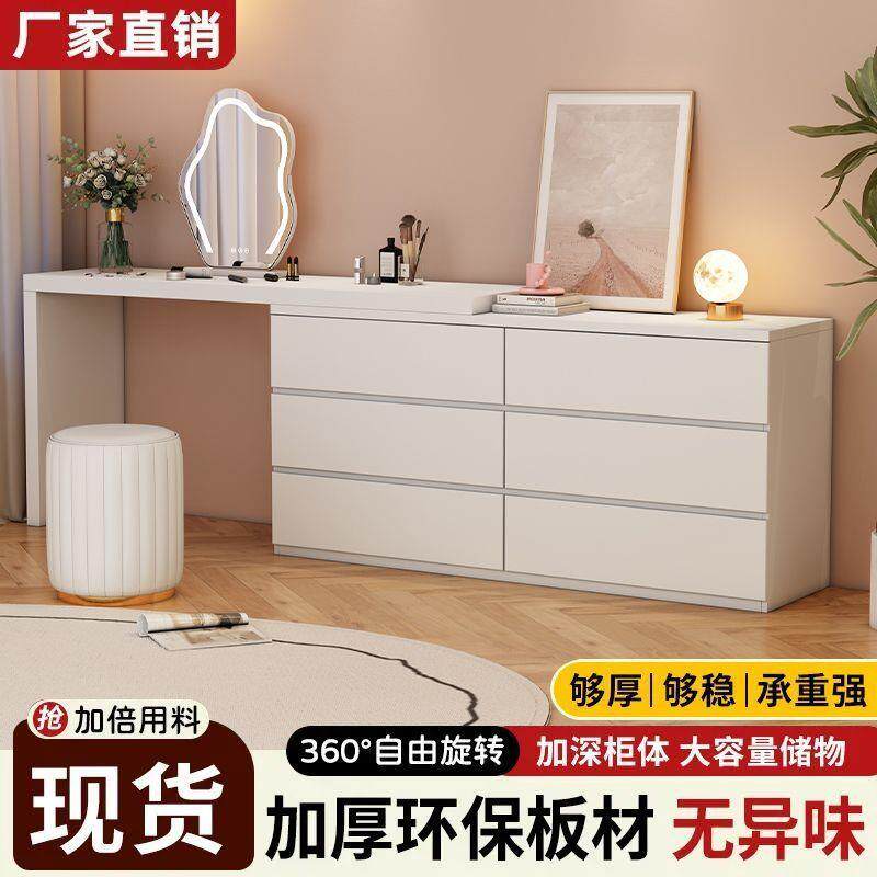 梳妆台斗柜一体家用卧室现代简约小户型可伸缩奶油风化妆桌收纳柜