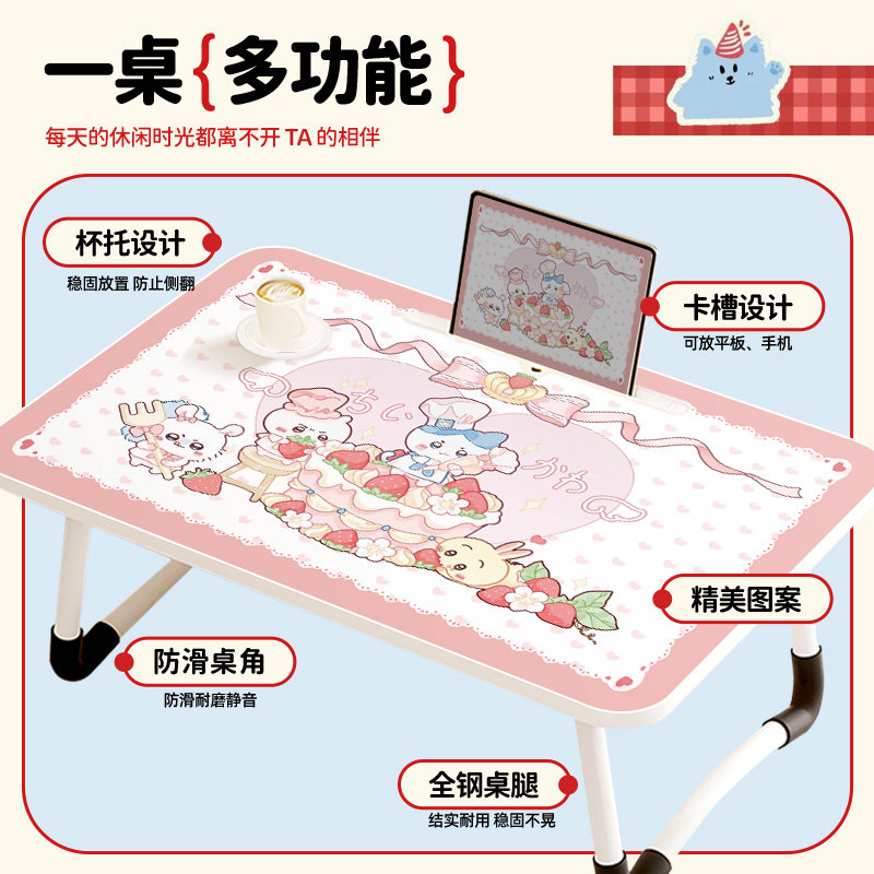 chiikawa床上多功能小桌子可折叠儿童家用卧室飘窗可移动小桌学生宿舍床上书桌餐桌笔记本电脑桌少女心图案