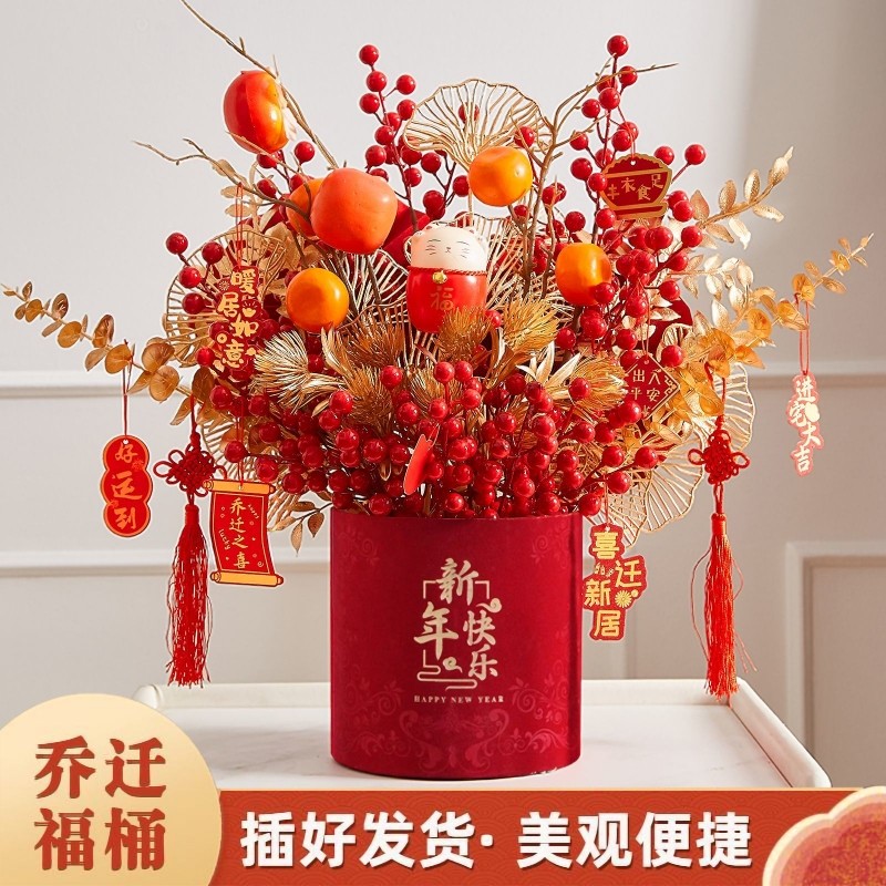 乔迁花束新居发财果春节福桶结婚客厅装饰摆件仿真花插花礼物摆放