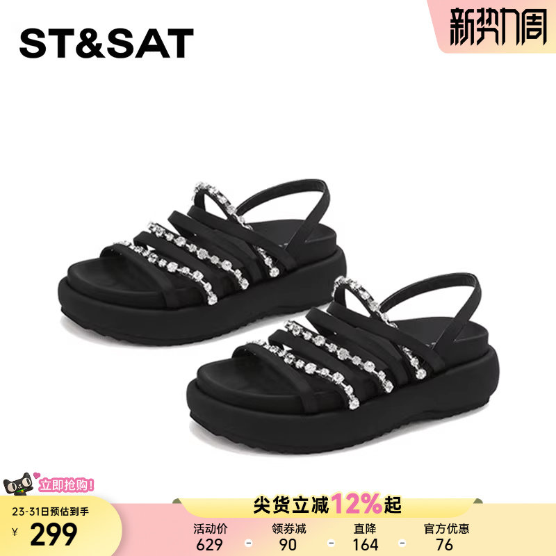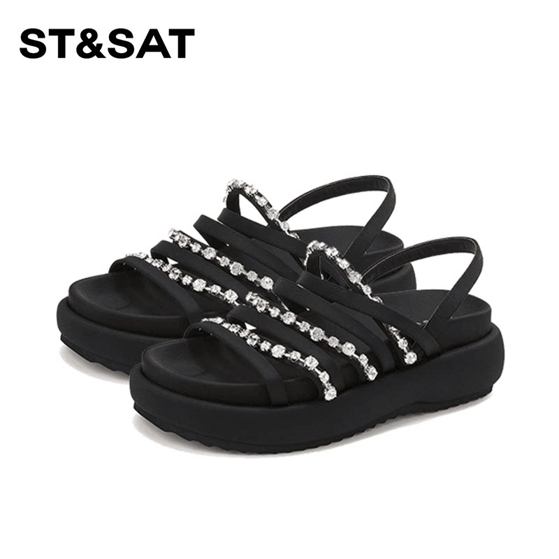 星期六时尚百搭平底休闲凉鞋女2025年夏新款舒适柔软水钻时装凉鞋
