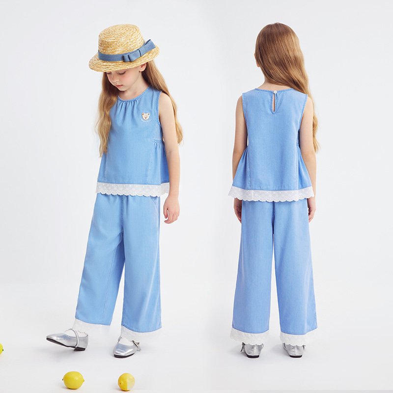 2026夏季新款女童套装洋气卡通可爱蝴蝶结露背条纹上衣短裤两件套
