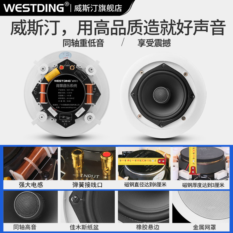威斯汀吸顶音响套装客厅背景音乐同轴喇叭家庭影院嵌入式吊顶音箱