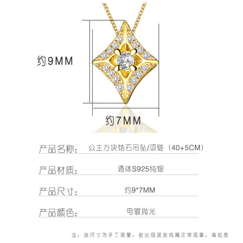 契爱S925银公主方项链女轻奢风时尚微镶锆石锁骨链小公主水晶项坠