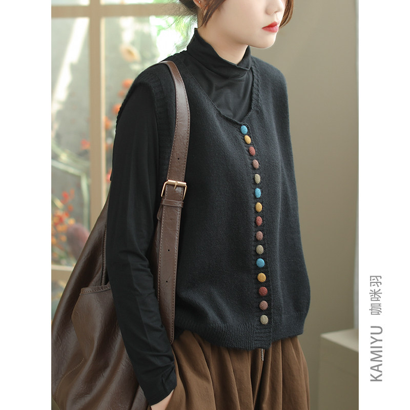 咖咪羽针织马甲女秋冬新款女式无袖坎肩马夹V领时尚休闲显瘦女款