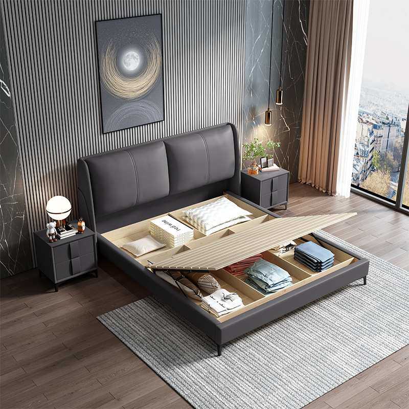 皮床轻奢床1.8米双人婚床现代简约主卧1.5米单人软体床皮艺储物床