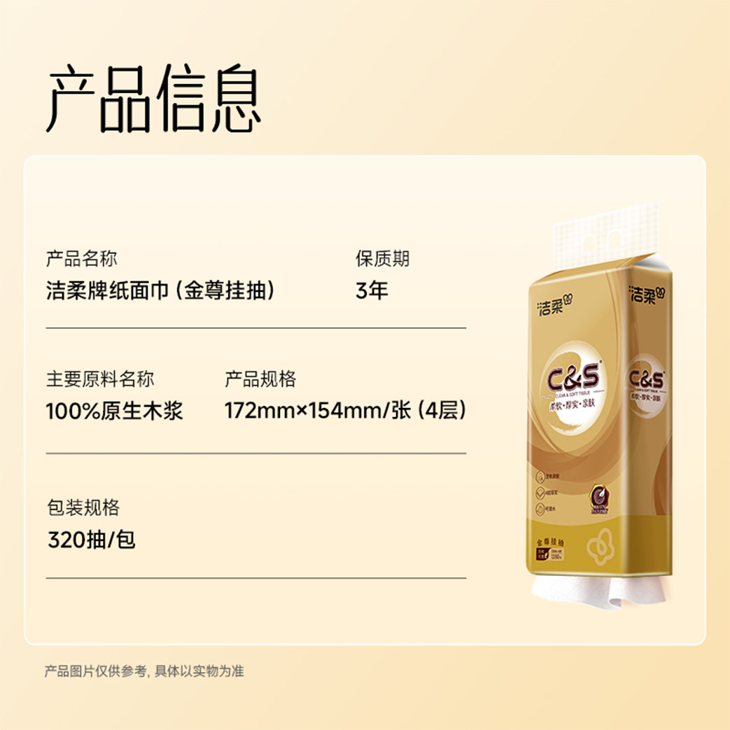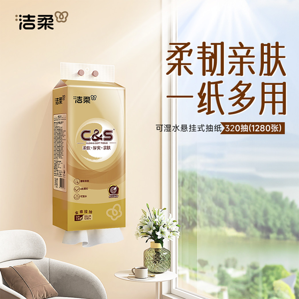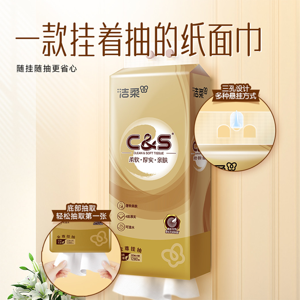 洁柔悬挂式抽纸底部抽餐巾纸家用实惠装抽纸卫生纸巾纸抽320抽/提