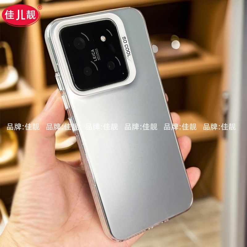 适用于小米14镜头大孔手机壳小米14pro新款保护套小米14ultra曲面屏高级至尊版镭射支架外壳全包软边防摔彩银