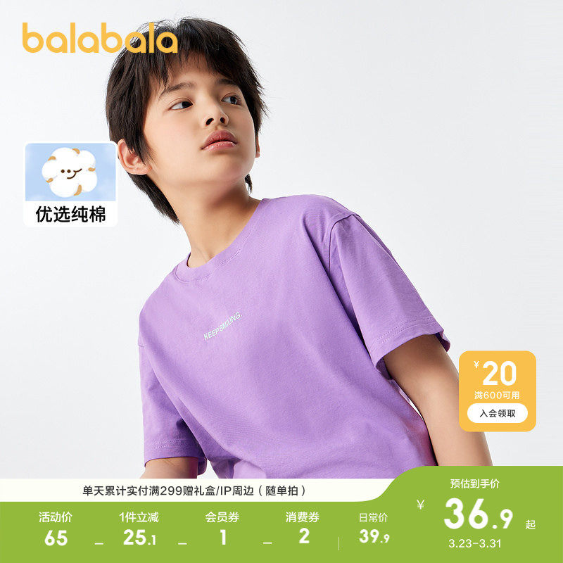 巴拉巴拉童装儿童男童t恤女童短袖轻薄春夏装上衣中大童亲子装潮
