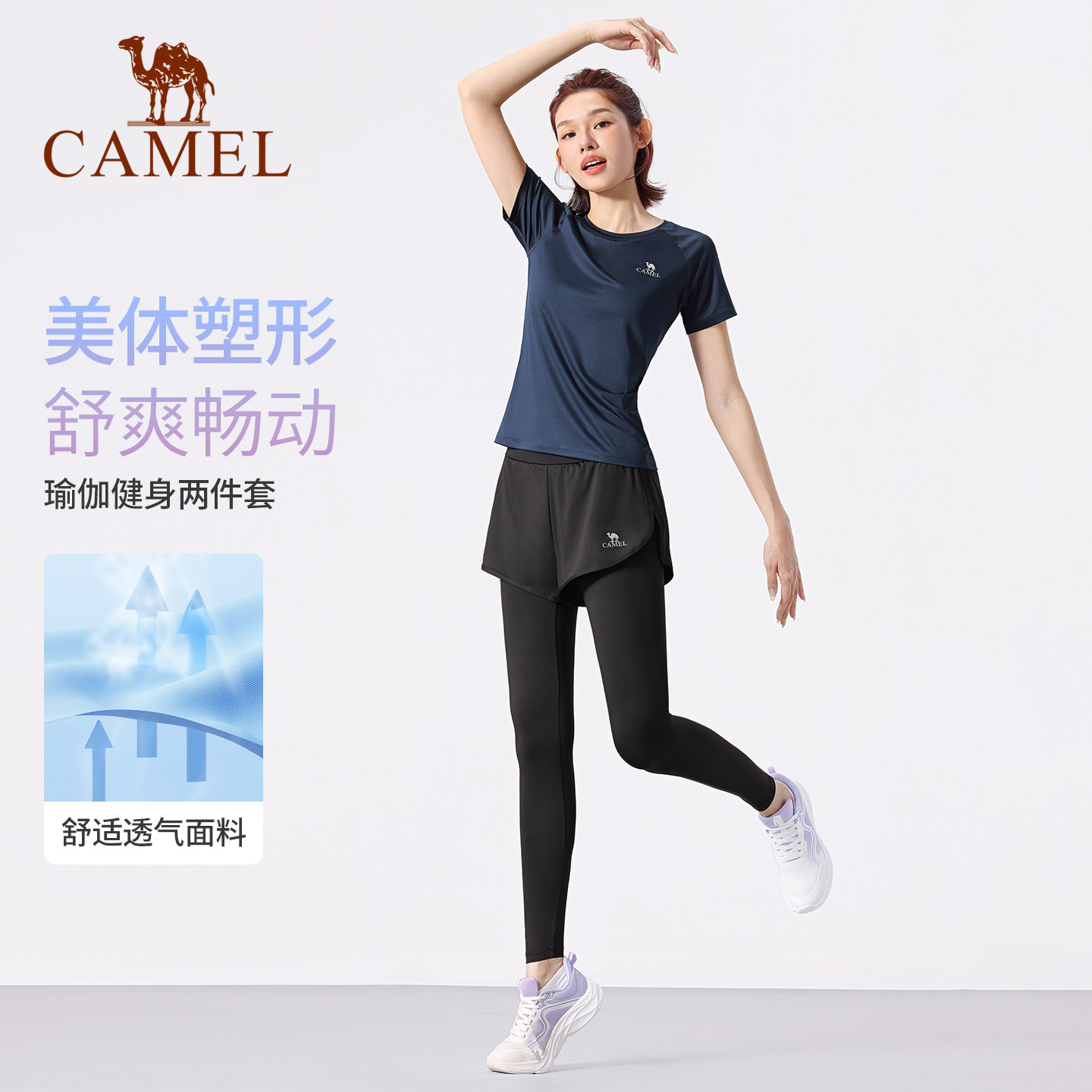 骆驼瑜伽服女套装夏季健身服时尚运动服跑步服户外晨跑短袖两件套