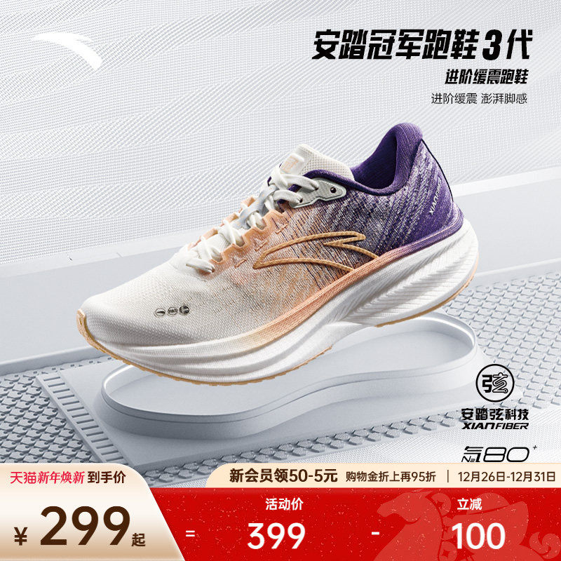 安踏冠军跑鞋3代 V3丨氮科技缓震跑步鞋新款女子长距离训练运动鞋