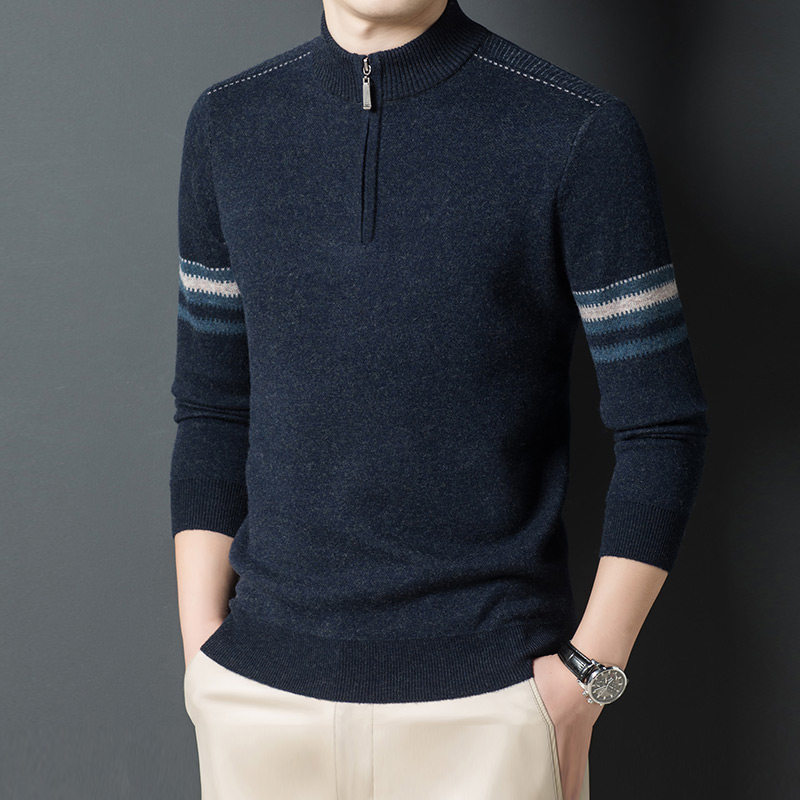 鄂尔多斯市半高领100%纯羊毛衫男休闲中厚保暖毛衣针织打底羊绒衫