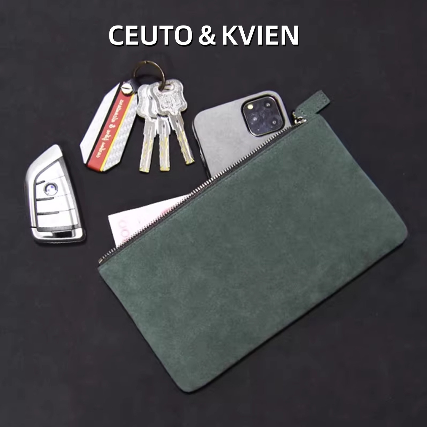 CEUTOKVIEN男士翻毛皮手拿包商务手抓新款手包简约手机信封钱包