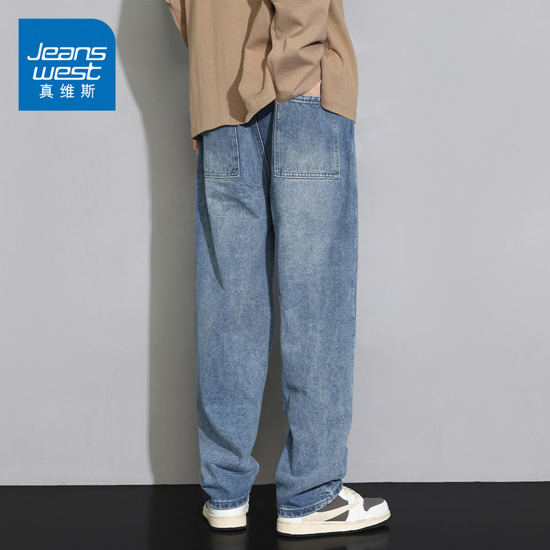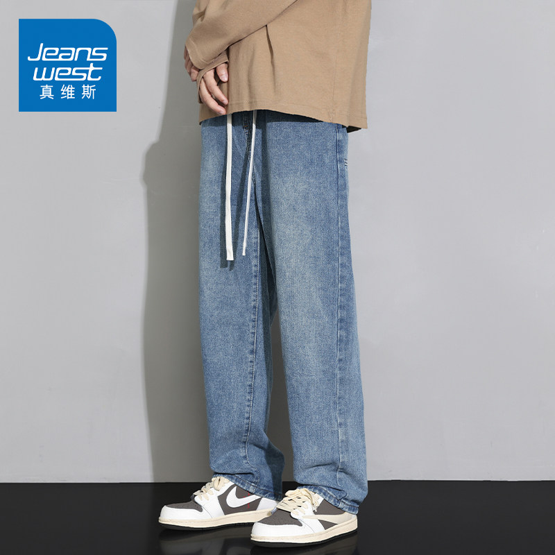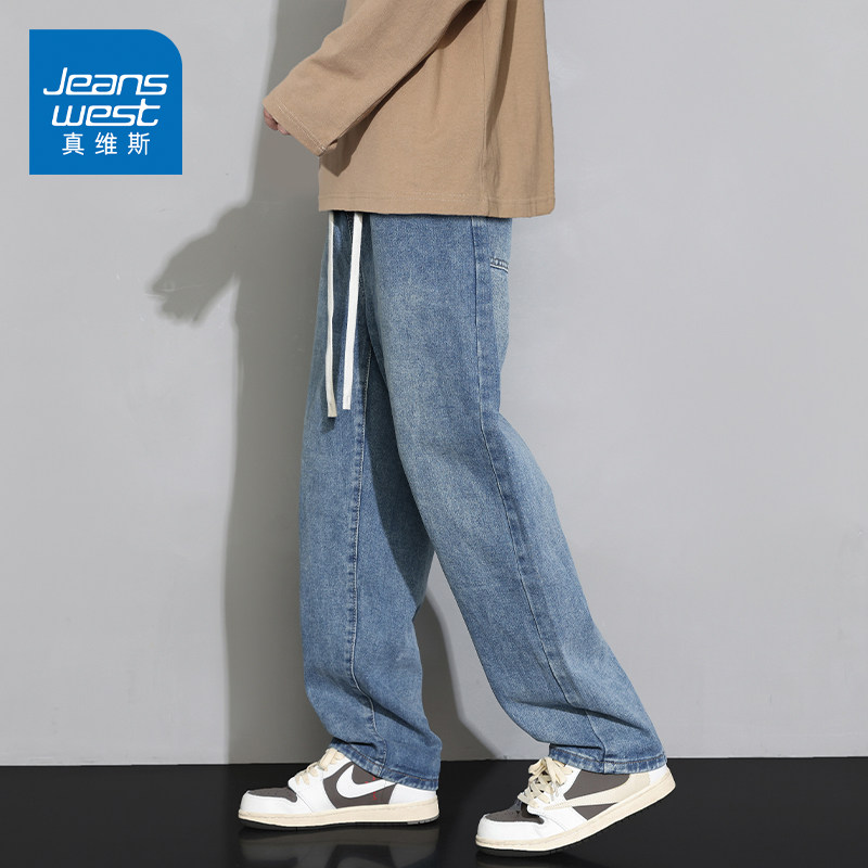 KZH真维斯浅蓝色牛仔长裤男士抽绳宽松紧男裤休闲2025新款秋冬季